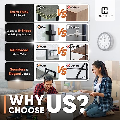 Safety is paramount with the CAPHAUS bookshelf, which includes U-shaped anti-tipping metal brackets to prevent any risk of tipping over. The adjustable leveling foot ensures optimal stability, even on uneven floors, making this bookshelf a practical choice for any home setting.