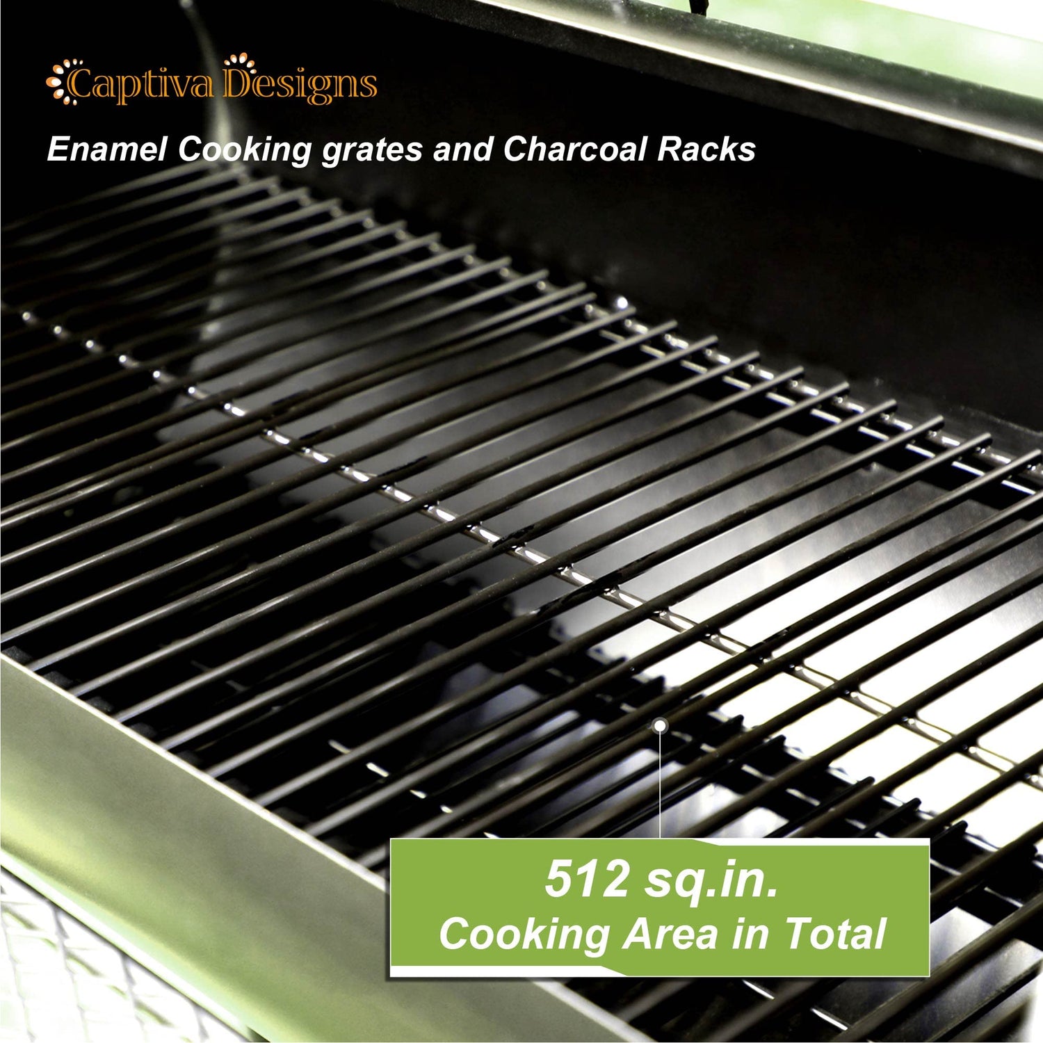 Captiva Designs Charcoal Grill with Offset Smoker, All Metal Steel Made Outdoor Smoker, 512 sq.in Cooking Area, Best Combo for Outdoor Garden Patio and Backyard Cooking