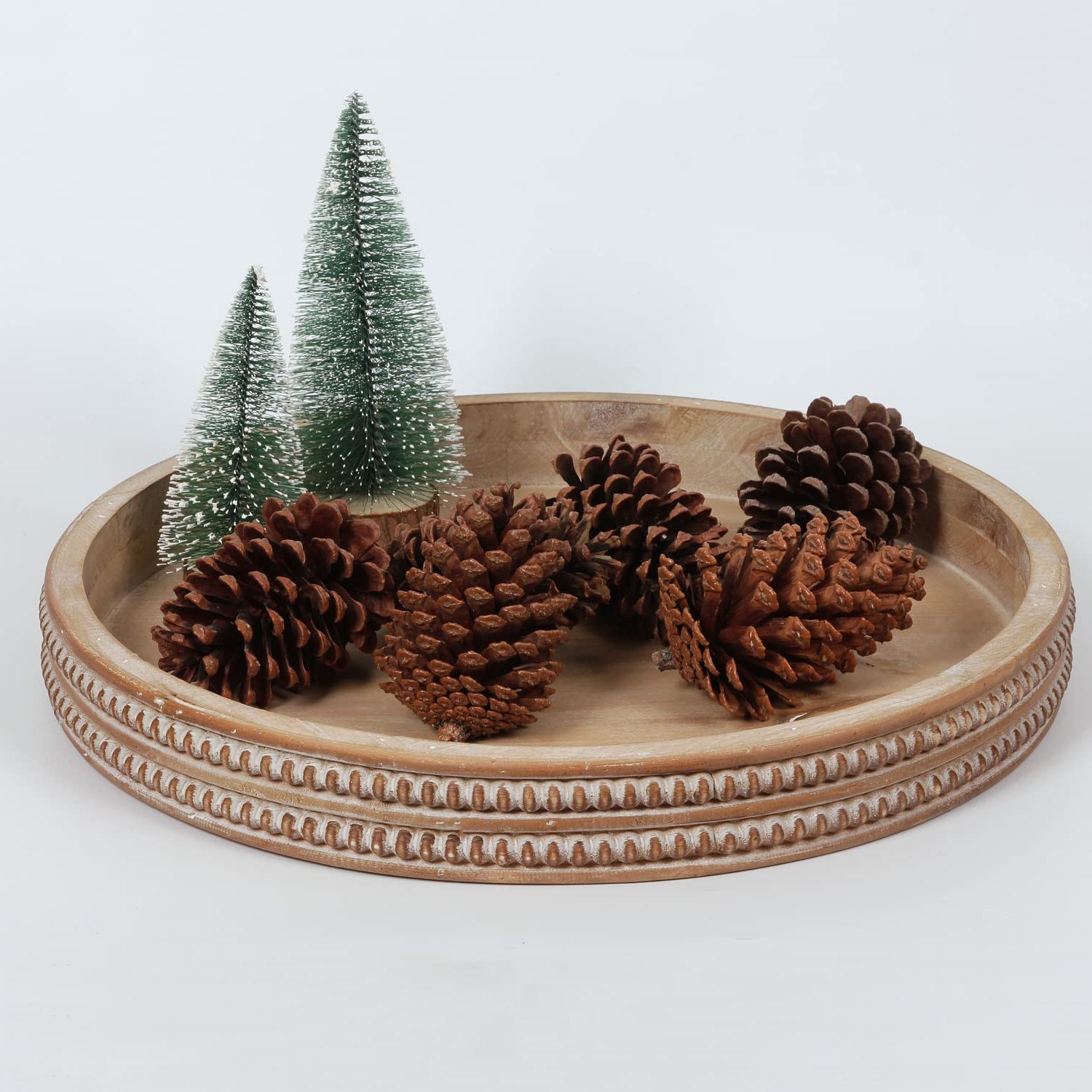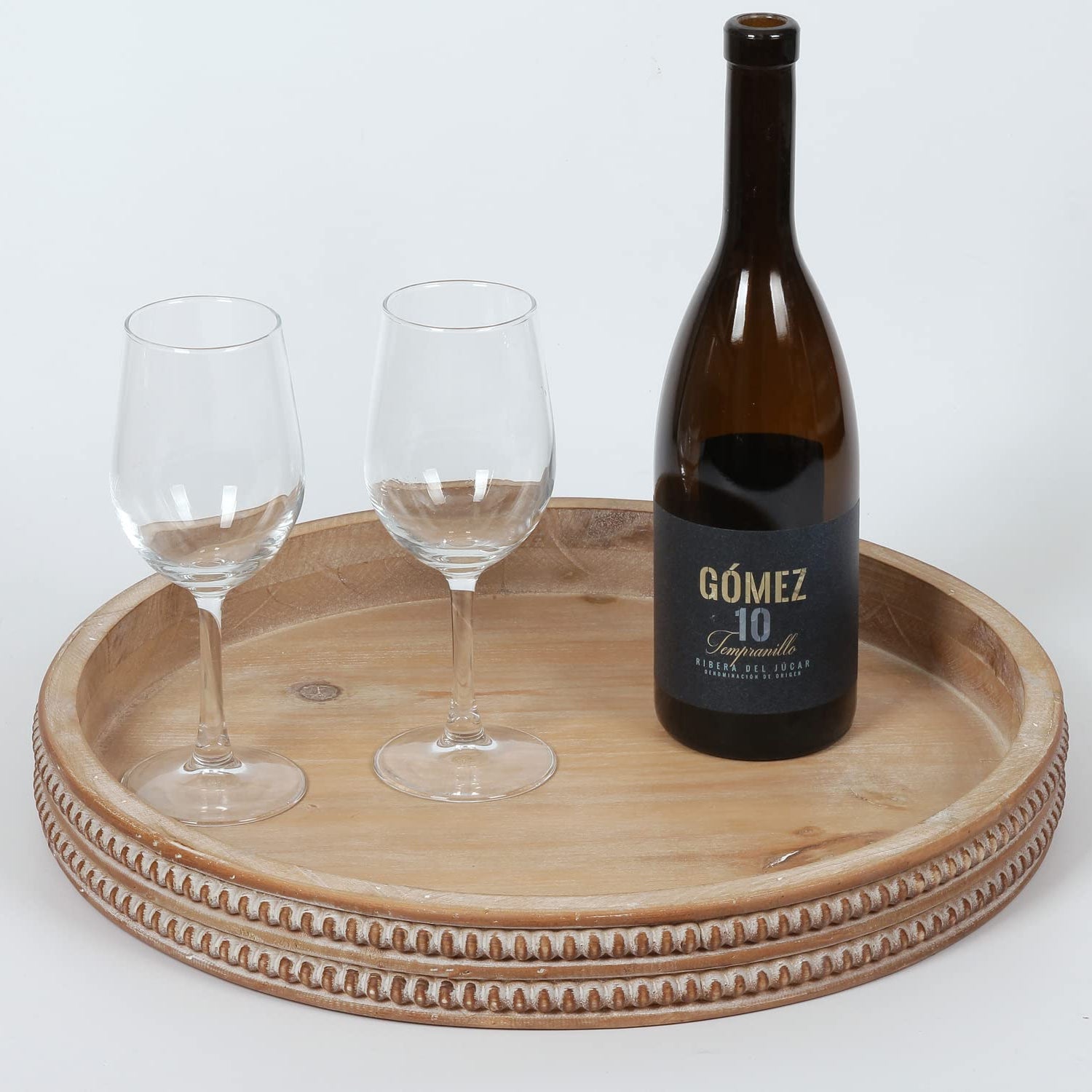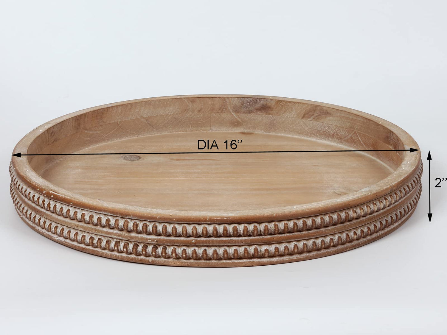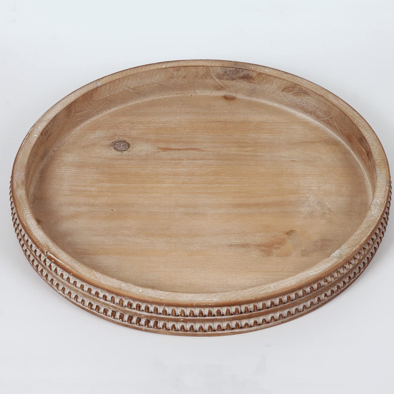 Carah & Cossh Round Wooden Serving Tray, Whitewashed Round Decorative Wood Tray, Round Farmhouse Rustic Decorative Tray, Perfect for Storage and Display (Brown)