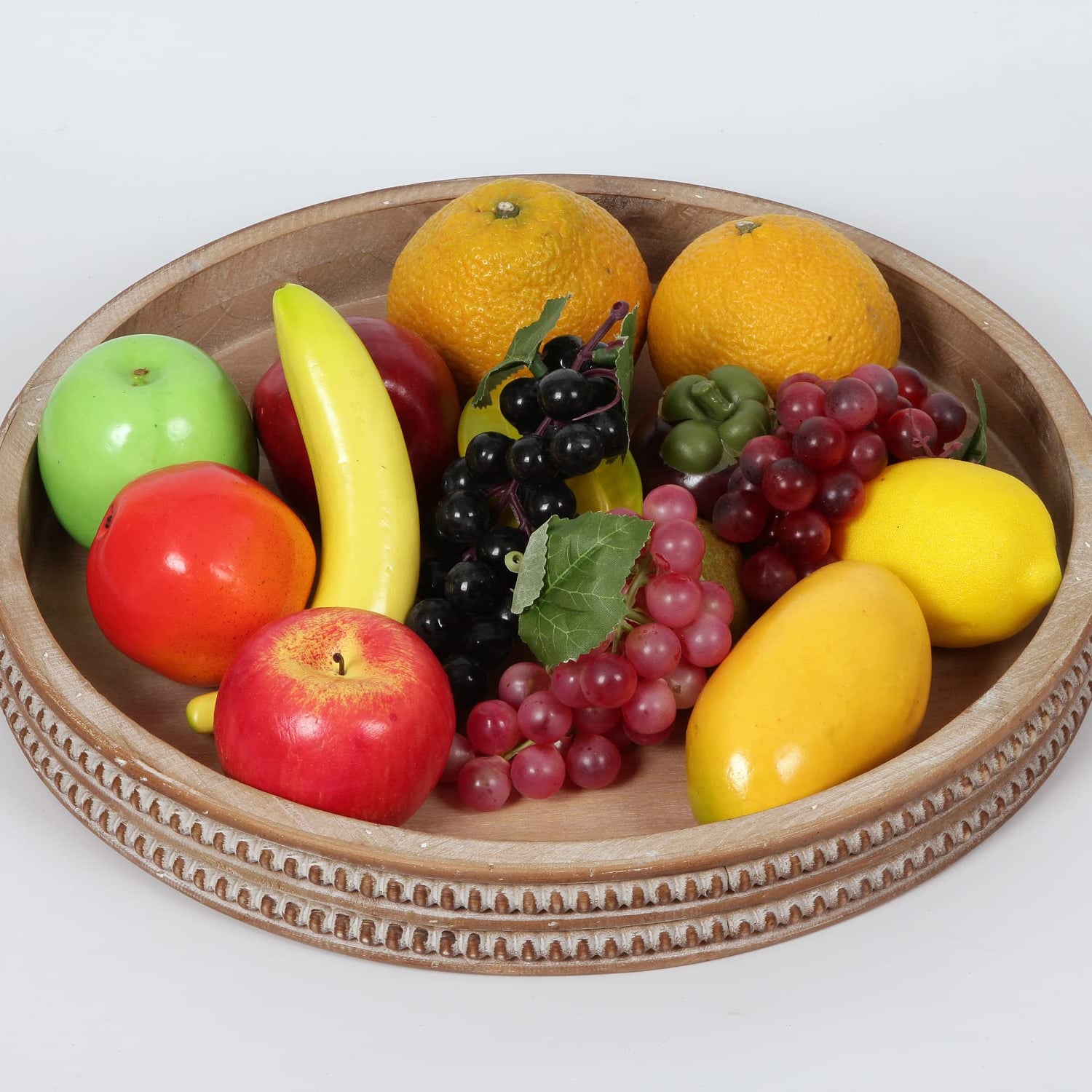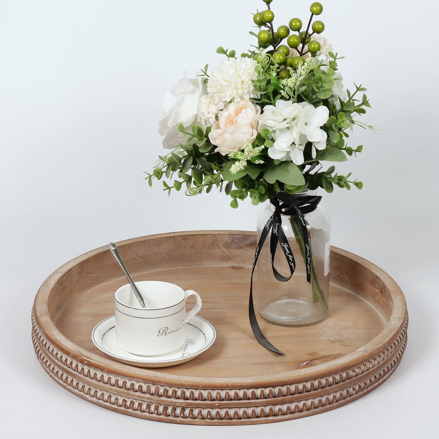 Details: Round Wooden Serving Tray, Whitewashed Round Decorative Wood Tray , Round Farmhouse Rustic Decorative Tray, Perfect for Storage and Display