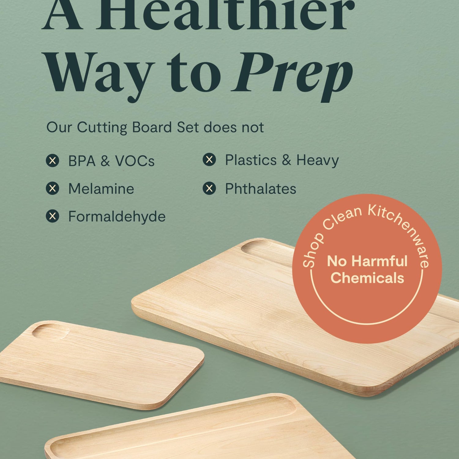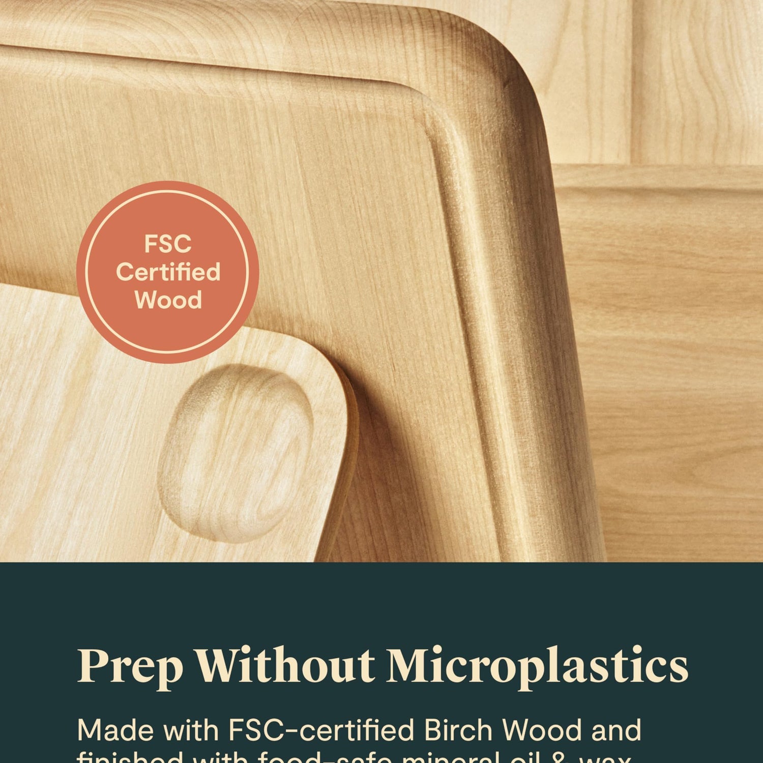 • Made entirely from FSC-certified Birch Wood, our wood cutting boards are eco-friendly, non-toxic kitchen essentials. No plastics, no BPA, just clean materials.