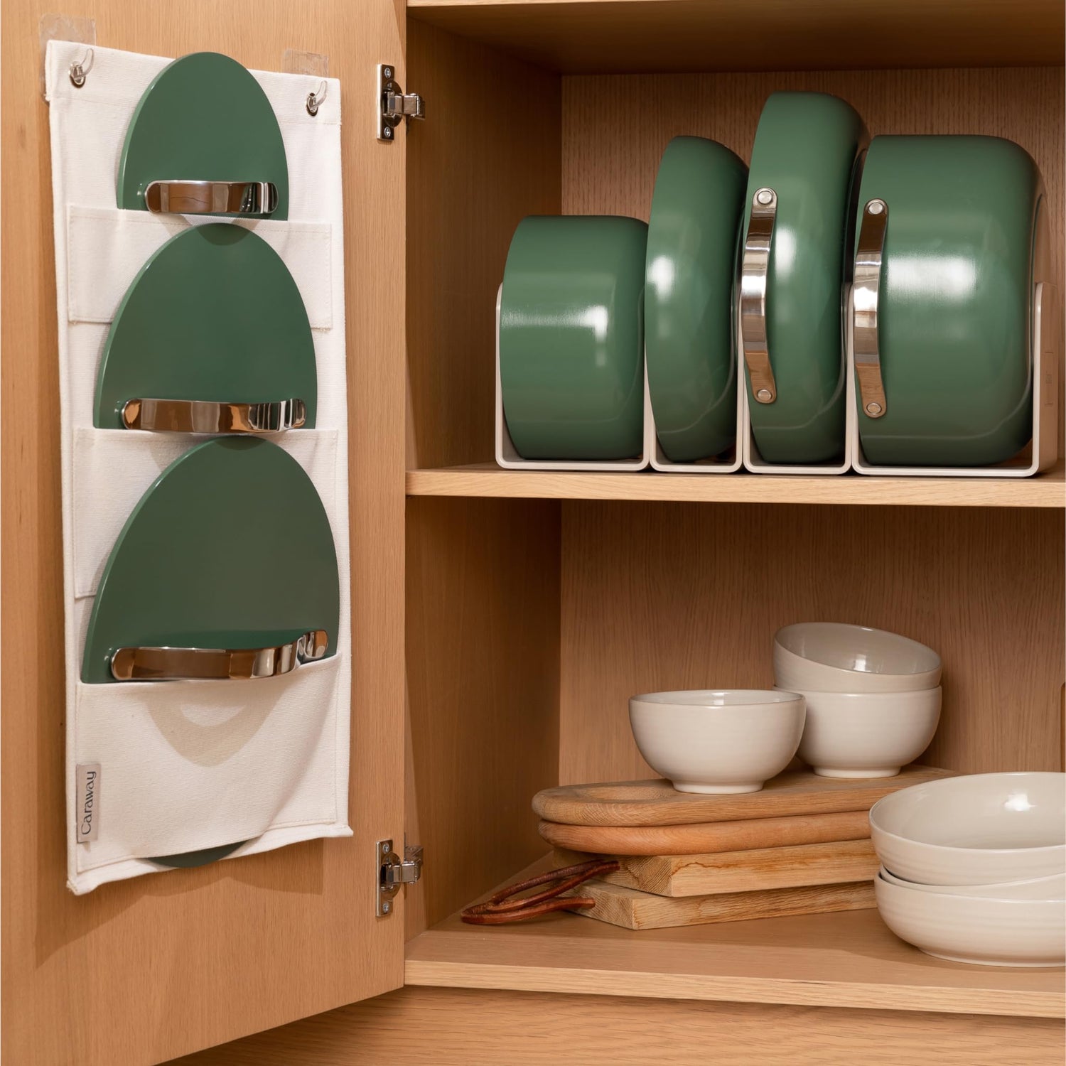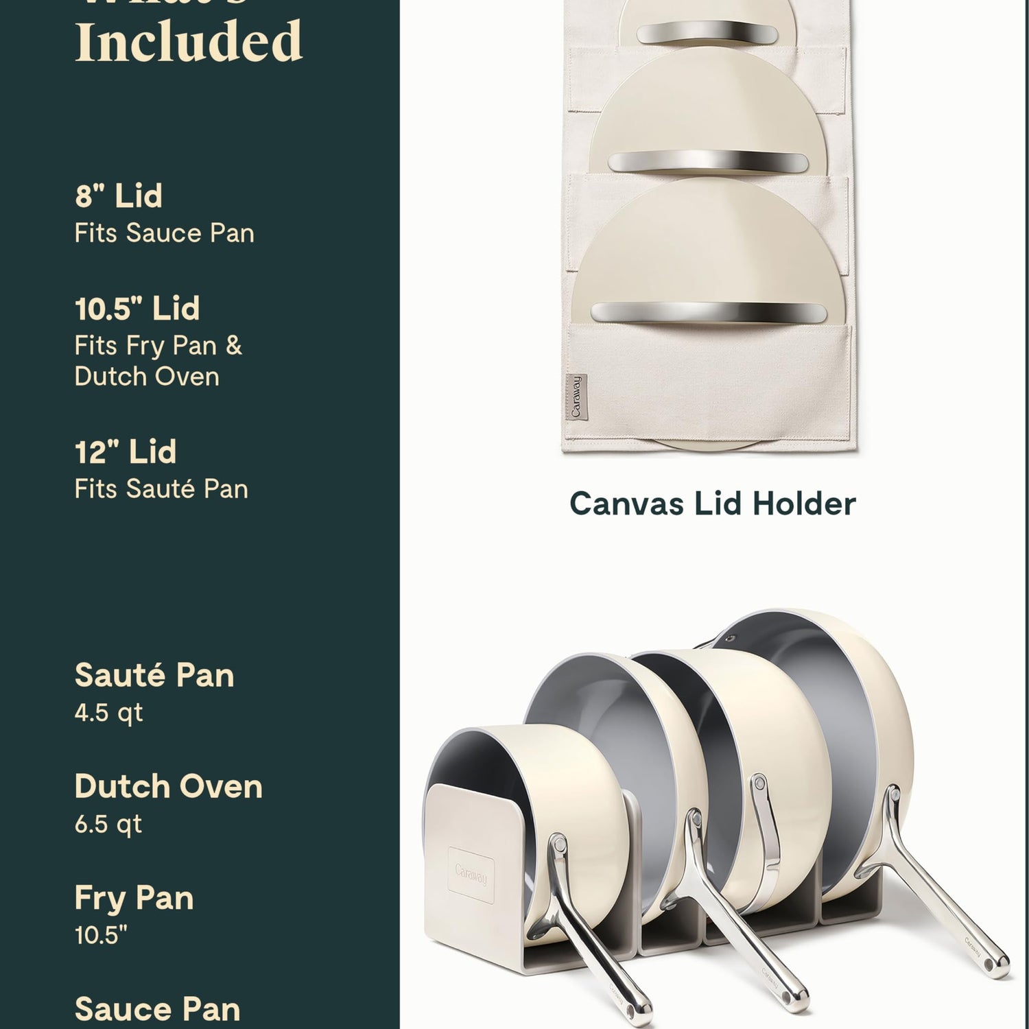 Caraway Nonstick Ceramic Cookware Set (12 Piece) Pots, Pans, 3 Lids and Kitchen Storage - Non Toxic - Oven Safe & Compatible with All Stovetops - Cream