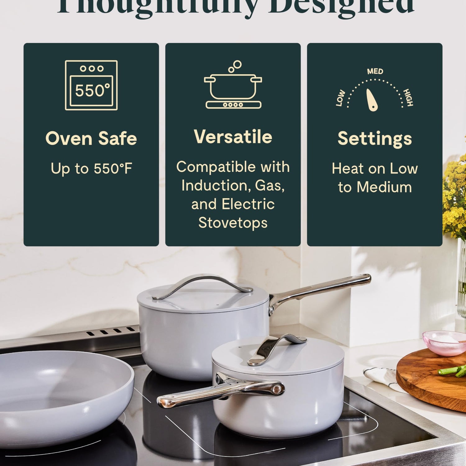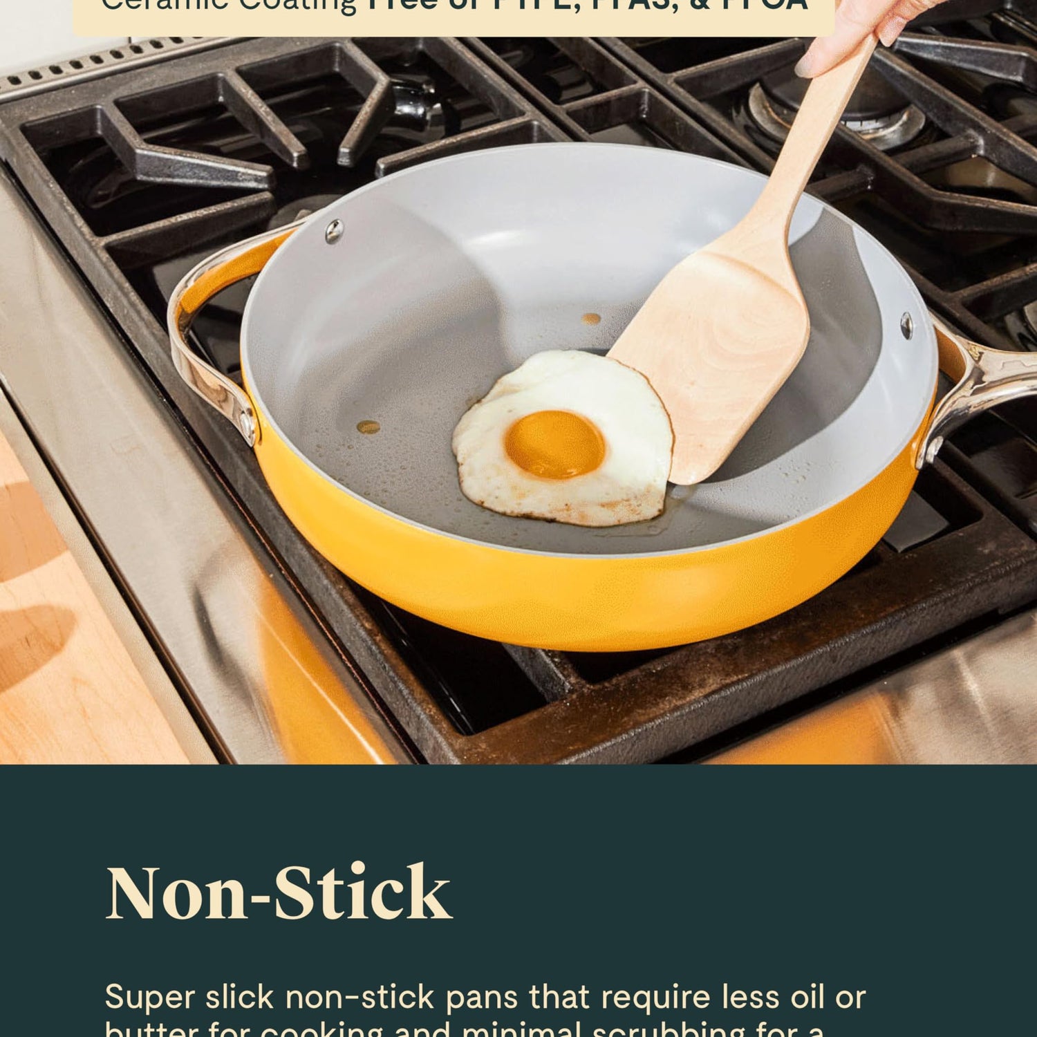 - NON-TOXIC COATING: All Caraway pot and pan sets are free of PTFE, PFOA, PFAS, lead, cadmium and other toxic materials that can leach into your food, making them safe for you, your family, and the environment.