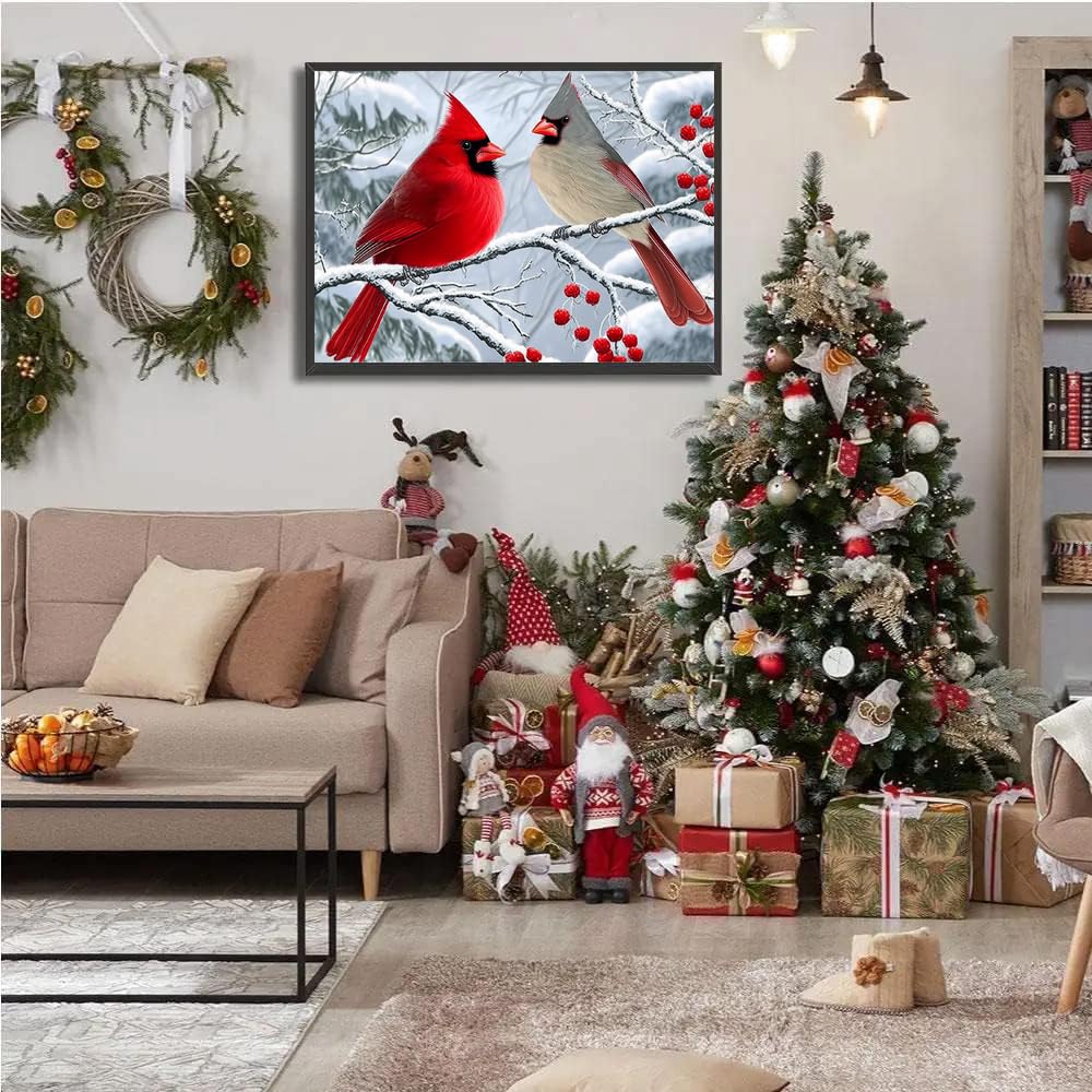 Cardinals Diamond Art Kits for Adults, 5D Christmas Diamond Painting Kits for Beginner, Full Round Drills Red Birds Painting by Diamond Snow Scene Bead Gem Art for Home Decor 16 x 12 in