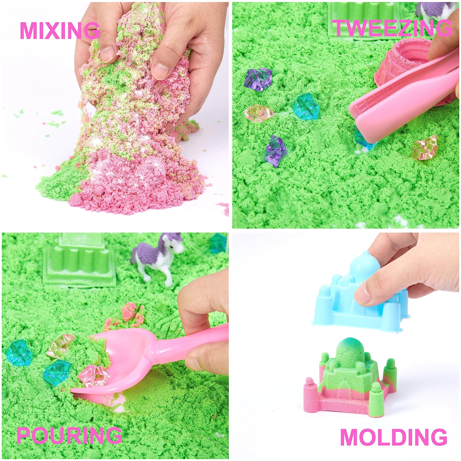 Carolart Unicorn Sensory Bin, Castle Molds, Sand Art Kit for Boys and Girls, Squishy Sand for Toddlers 3+