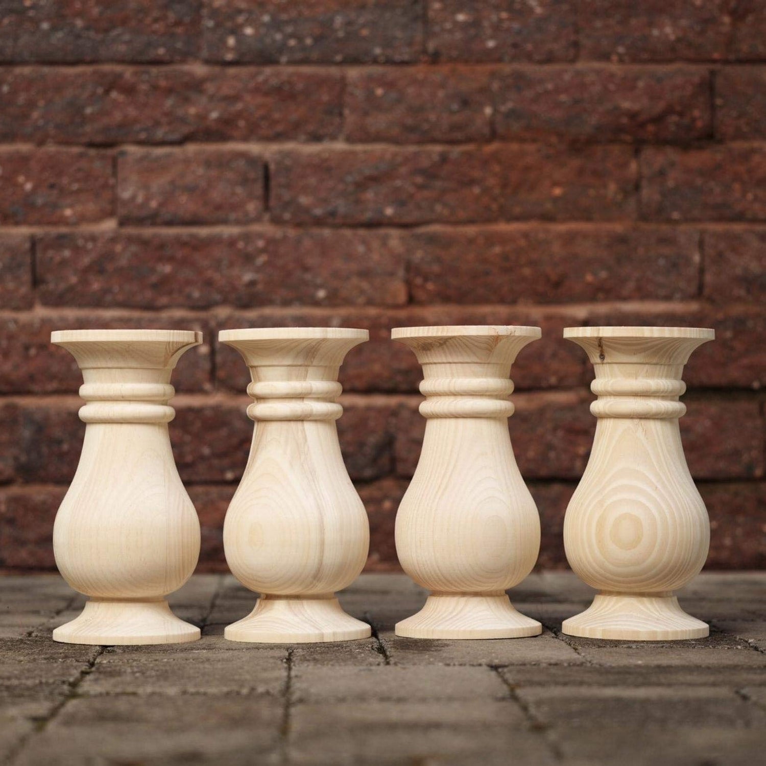 Details: Create an inviting centerpiece with our pine balustrade coffee table legs, the perfect foundation for your living space. Made from locally sourced American pine, these bold wooden legs make a statement. They are ideal for adding a touch of natural warmth to your decor. Proudly made in NC, our commitment to a 100% domestic supply chain ensures quality and supports local craftsmanship. These unfinished coffee table legs await your creative touch and are ready to become part of a timeless furniture piece that's uniquely yours. With their unique design, they promise stability and style, making them an excellent choice for DIY enthusiasts and professional designers alike. Embrace natural beauty with these pine legs – the core elements for a truly personalized coffee table. **Price is for a set of 4**