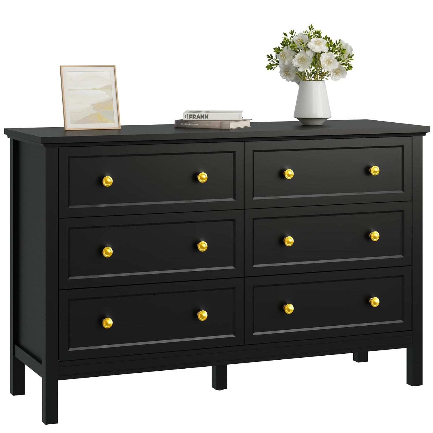 - Modern Design: The sleek black finish and classic gold knob handle provide a unique finish while sure to add a glamorous look to your room and provide an easy storage idea for your room. 6 drawer dresser brings a retro modern twist to your furniture decor.