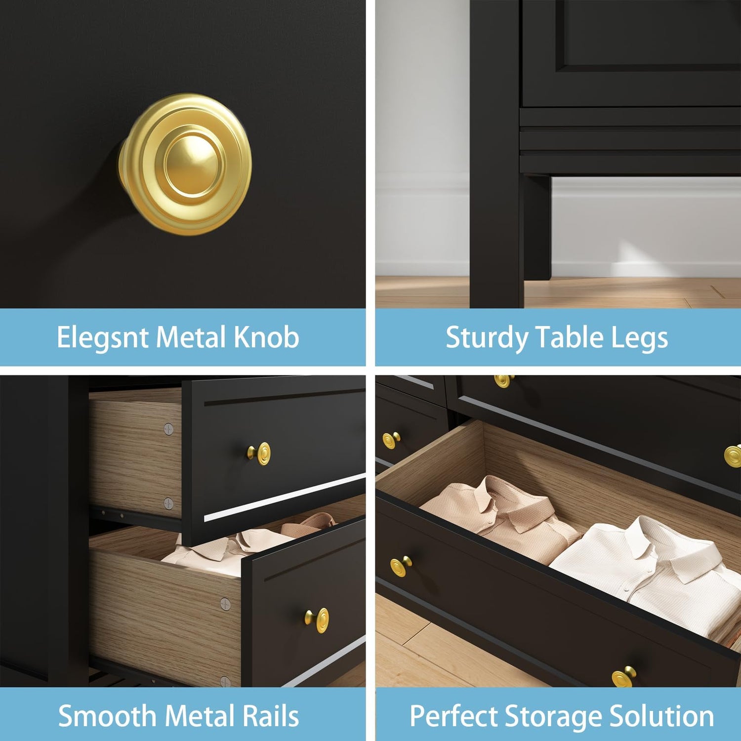 - Unique Modern Design: The black finish and gold handle exude cool and crispiness, this chest of drawers adopts a simple modern style, which is making this dresser for bedroom even more unique and charming, with a certain sense of fun and premium beauty. It can easily match any interior style, providing a simple, spacious organizer and storage solution for your home.