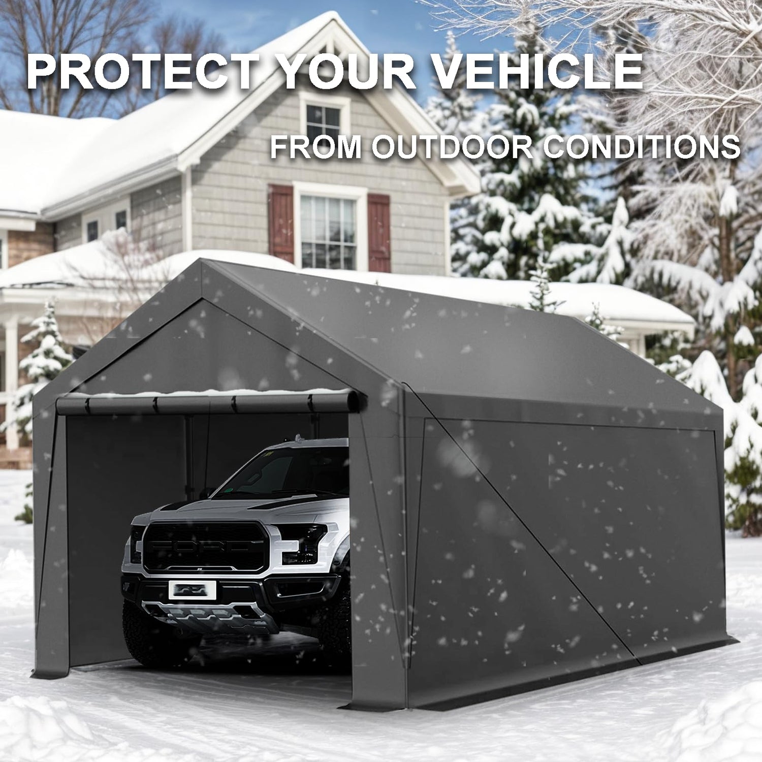 - 【Sturdy & Weatherproof Canopy】:Our large Carport is made of 180 grams of 5-layer fabric and can protect your car or boat against all four seasons elements,like sun, rain and dust. The all-season tarp is bound with an elasticized ball, and the solid fabric is strong enough to prevent tearing.