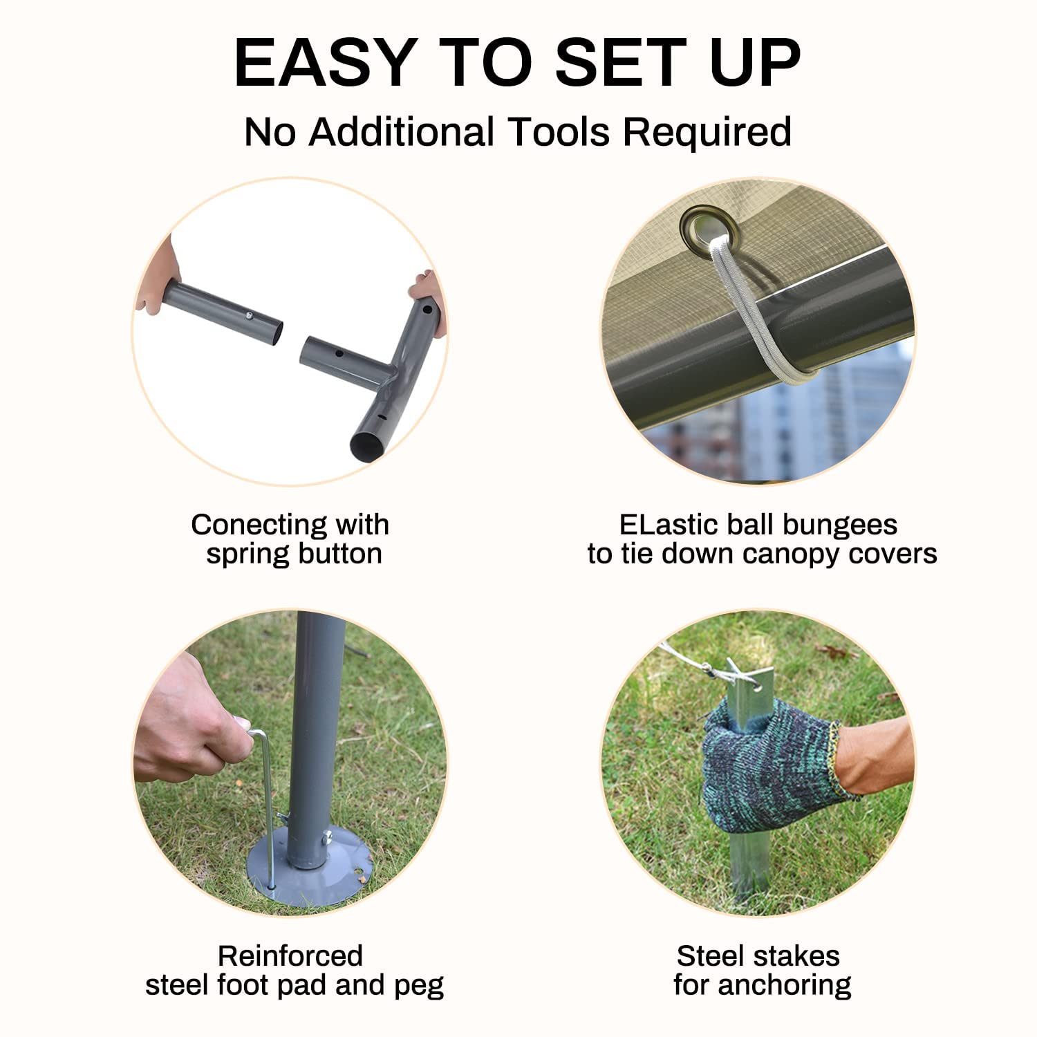 - 【Stability Design】This Carport is Supported by eight heavy-duty galvanized metal poles, The frame connector uses art-welding, elastic ball strap fastens the canopy to the frame, Come with ground stakes and guy ropes for extra support. keep your belongings safe and secure