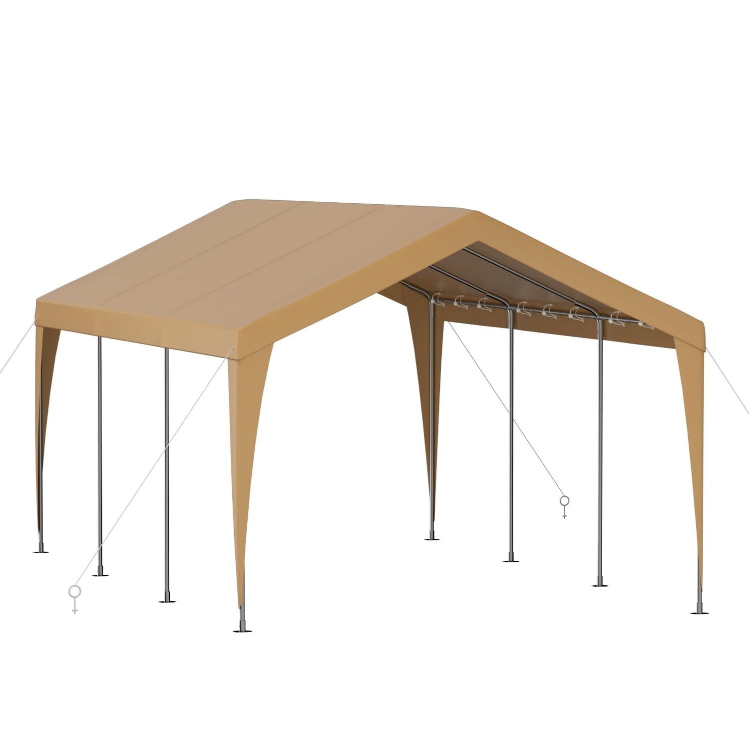 - 【Heavy Duty Stability Frame with 8 Legs】-This carport shelter is constructed with a heavy-duty rust-resistant galvanized steel frame that prevents rust, and corrosion. Featuring 8 legs comprising thick steel poles, along with 4 sturdy windproof ropes and 16 ground stakes make the whole metal carport 12x20 more stable and can be safe from harsh weather conditions