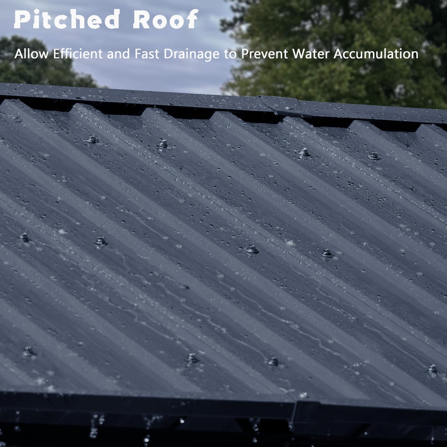 - Heavy Duty Metal Carport: Compared with other similar products, the traditional tent-type roof is abandoned and replaced with color steel plates with a protective film on the surface to adapt to the changing outdoor weather. The carport is surrounded by strong square tubes for support, and the plastic parts are made of polypropylene to reinforce the overall stability of the metal carport.It also avoids product damage caused by collisions during transportation
