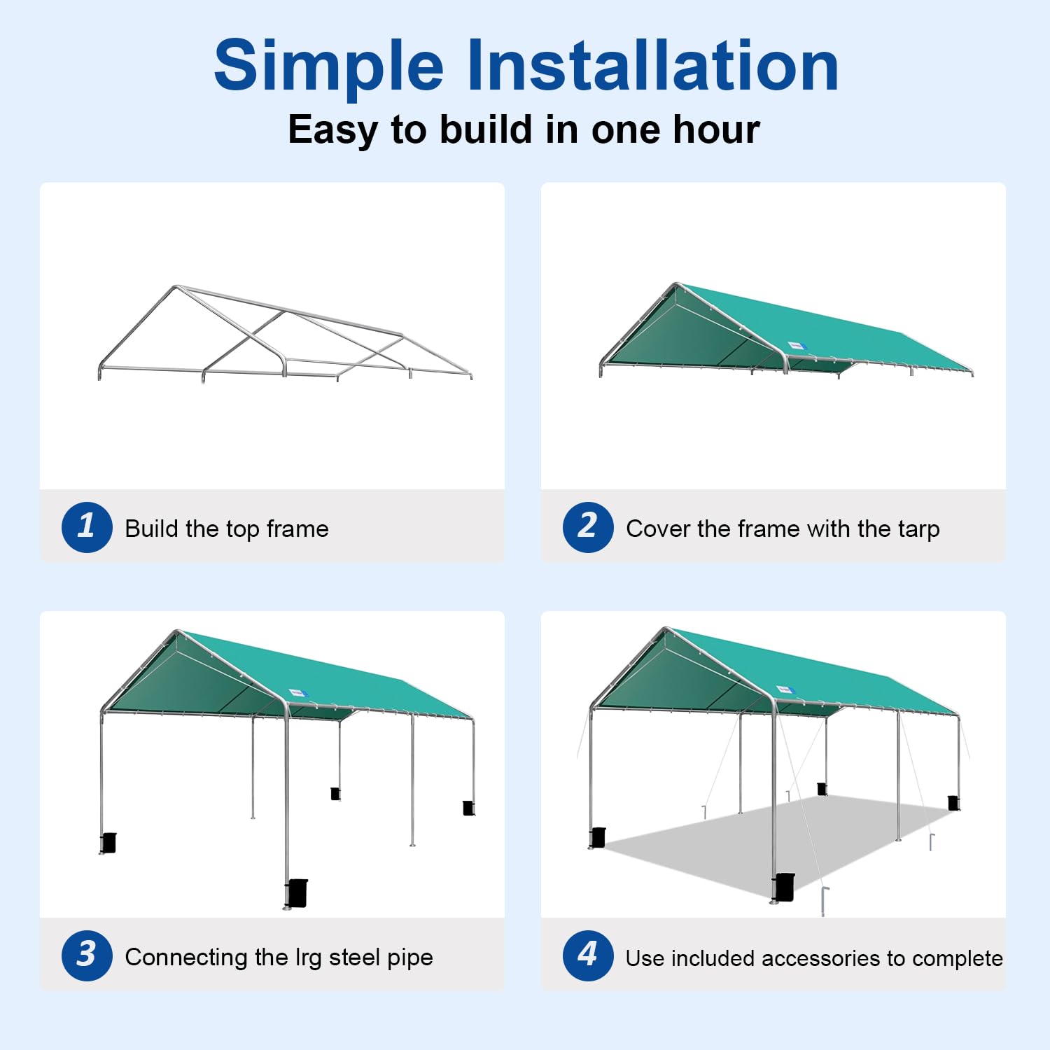 - Spacious: Our carport features an open design for you to drive your vehicle in and out quickly. The car tent's large size can protect small and medium cars from weather damage, making it great for homes without a garage or outdoor shelter.
