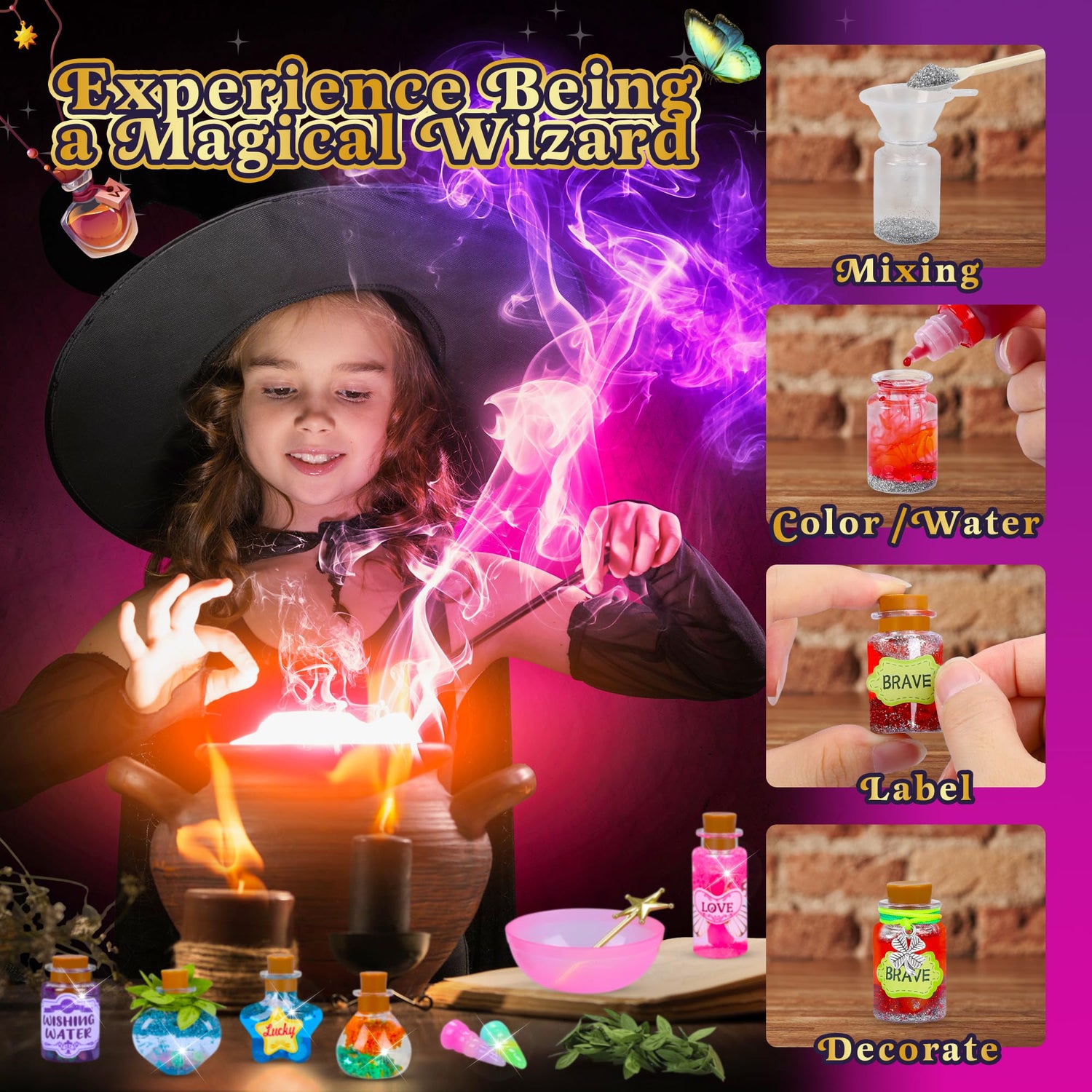 - Upgraded Magic Witch Crafts Potion Set: A great value set offering up to 26 potion bottles, with potion display case, recipe book, fairy wand, power crystals, unicorn horns and other magical items. Children will be immersed in this wonderful magical world in no time