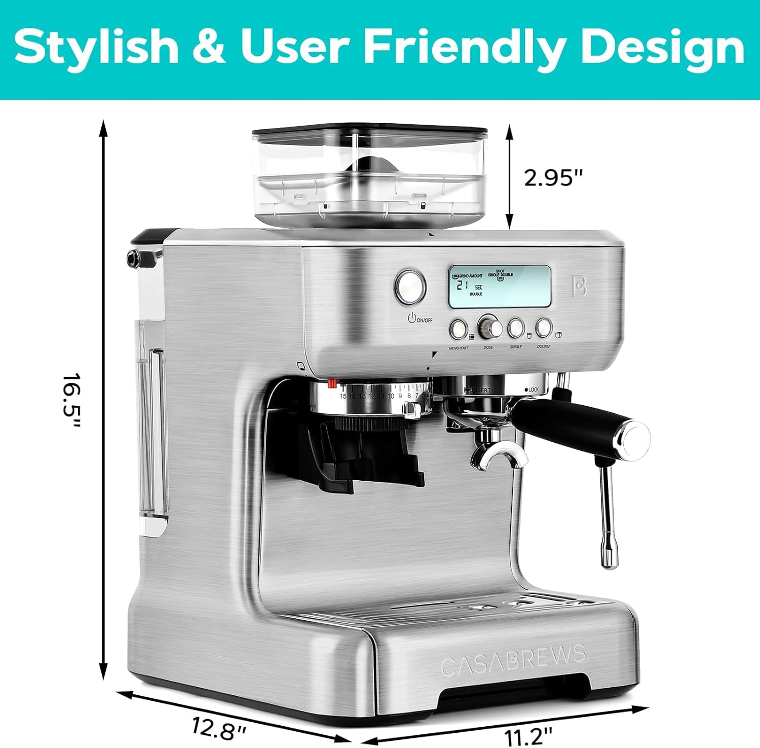 CASABREWS Espresso Machine with Grinder, Professional Coffee Maker with Milk Frother Steam Wand, Barista-Quality Cappuccino Latte Machine with LCD Display, Great for Coffee Enthusiasts
