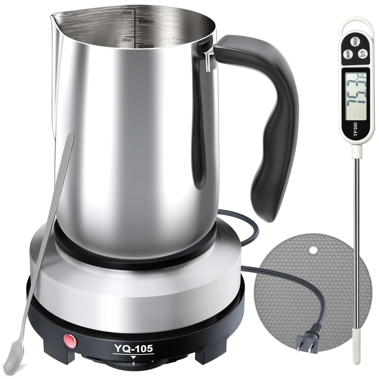 - 【Candle Making Kit with Electronic Hot Plate】We provide a variety of accessories to assist beginners in making perfect candles, including 900ml Stainless Steel Candle Pouring Pot x1, 500w Electric Hot Plate x1, Anti-hot Mat x1, Stirring Spoon x1, Thermometer x1, If you are a beginner, you will never go wrong choosing this set