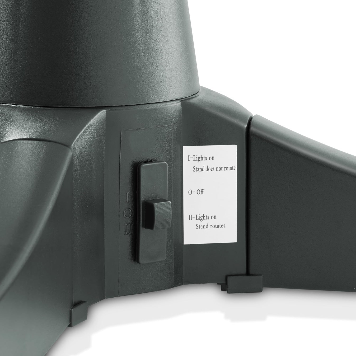 - Quick set-up: The stand comes in 5 easy to assemble pieces; the motor/base and four legs. Tree Dark green color blends in with your tree. Measures 26" x 26" x 7.25". Weighs 3 lbs.