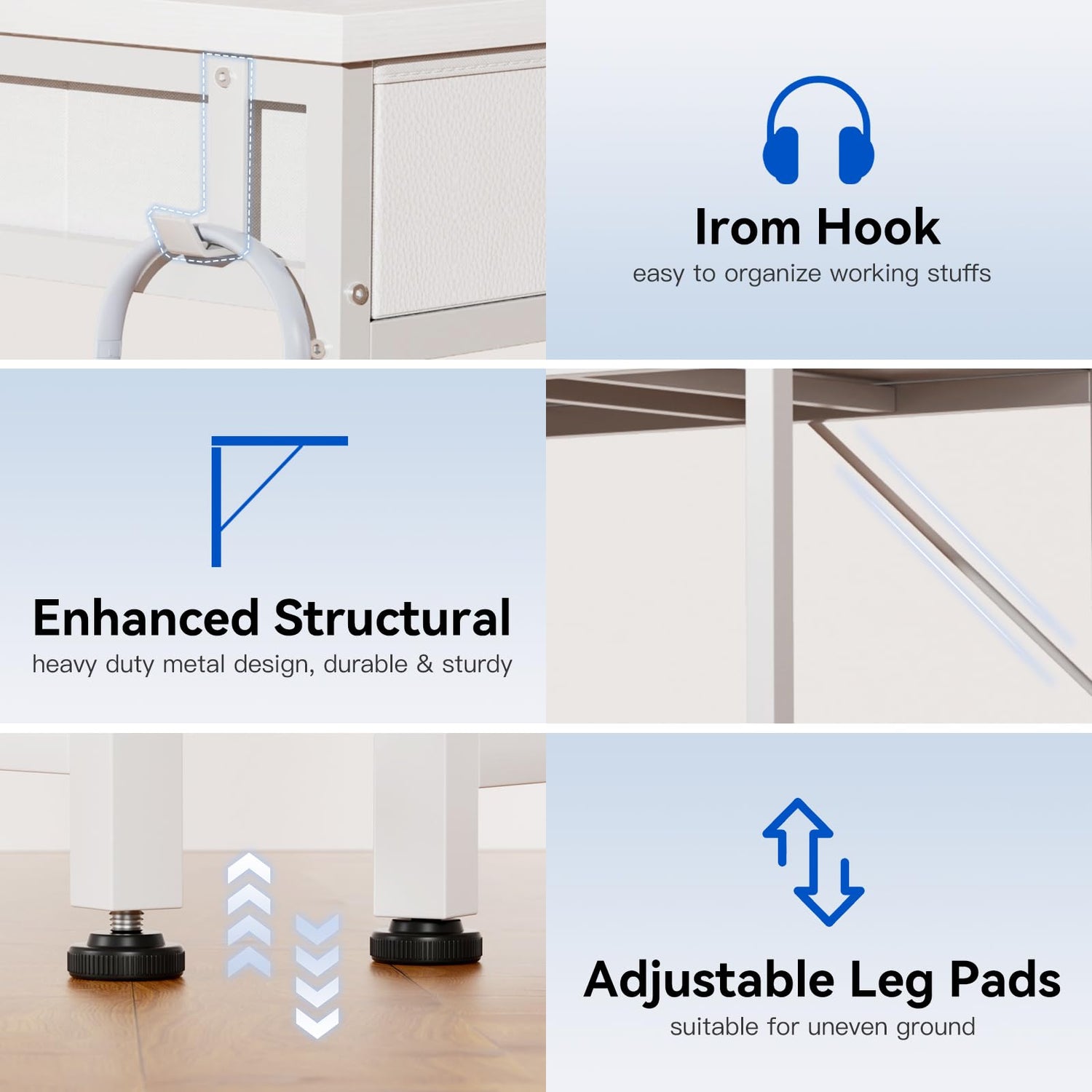 - Modern & Minimalist Aesthetic. With its sleek white finish and minimalist design, this desk adds a touch of modern elegance to any room. It seamlessly blends with various decor styles, making it a versatile choice for home or office use.