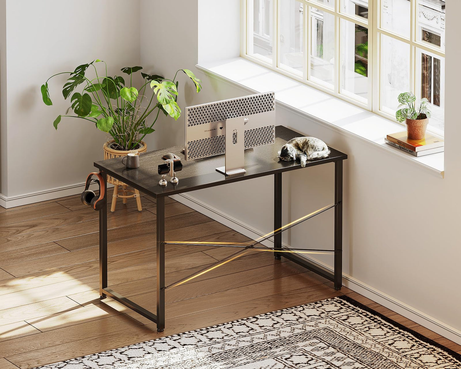 - 【Convenient Hook Design】: Comes with multifunctional hooks to streamline your workspace, saving time and boosting efficiency. Conveniently hang headphones, bags, and other essentials on the hooks. Compact design is ideal for home offices, bedrooms, and small spaces.