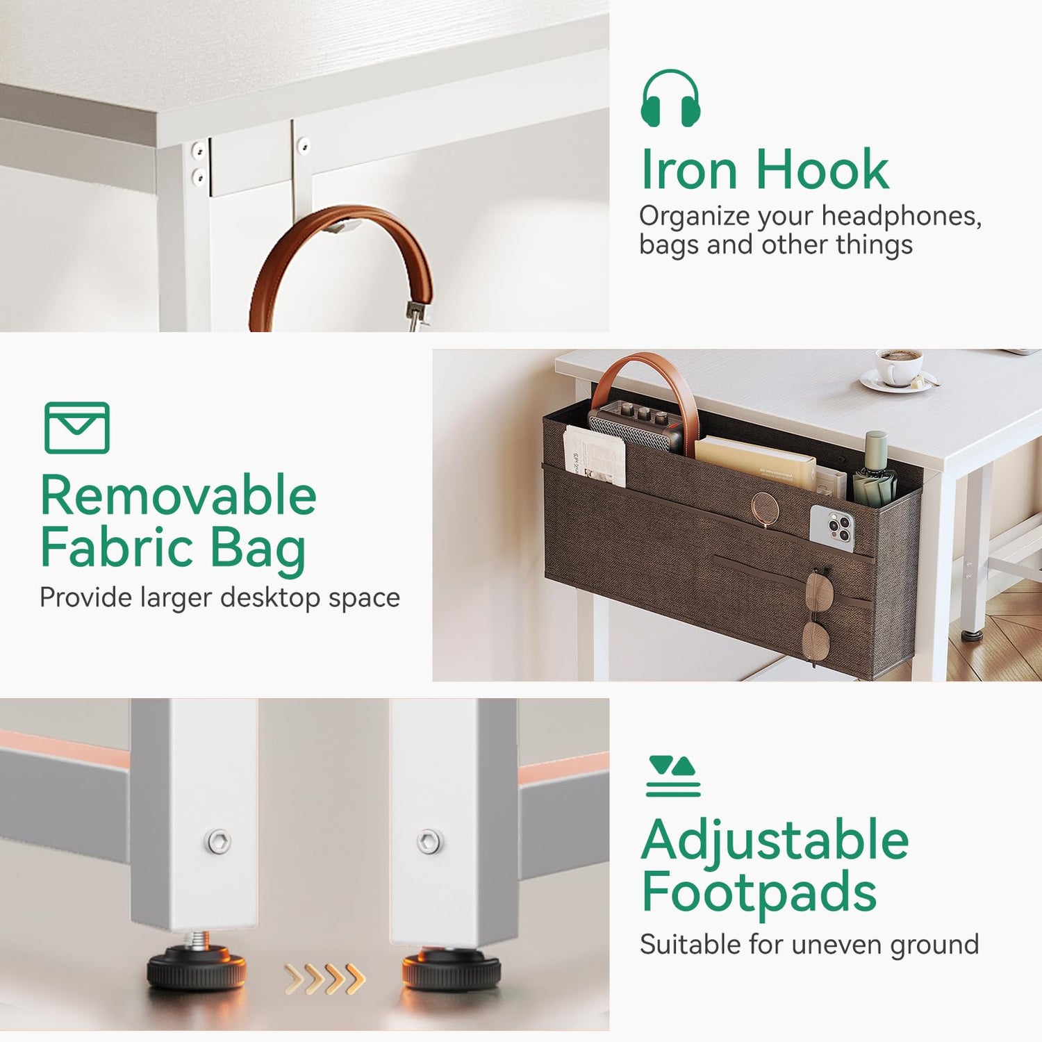 - 【Hook & Cloth Storage Bag】 A versatile hook is perfect for hanging headphones, bags, and other useful gadgets, keeping everything easily accessible and organized. The bag can be used to organize books and files, ensuring a orderly desktop. Bag and hook are reversible.
