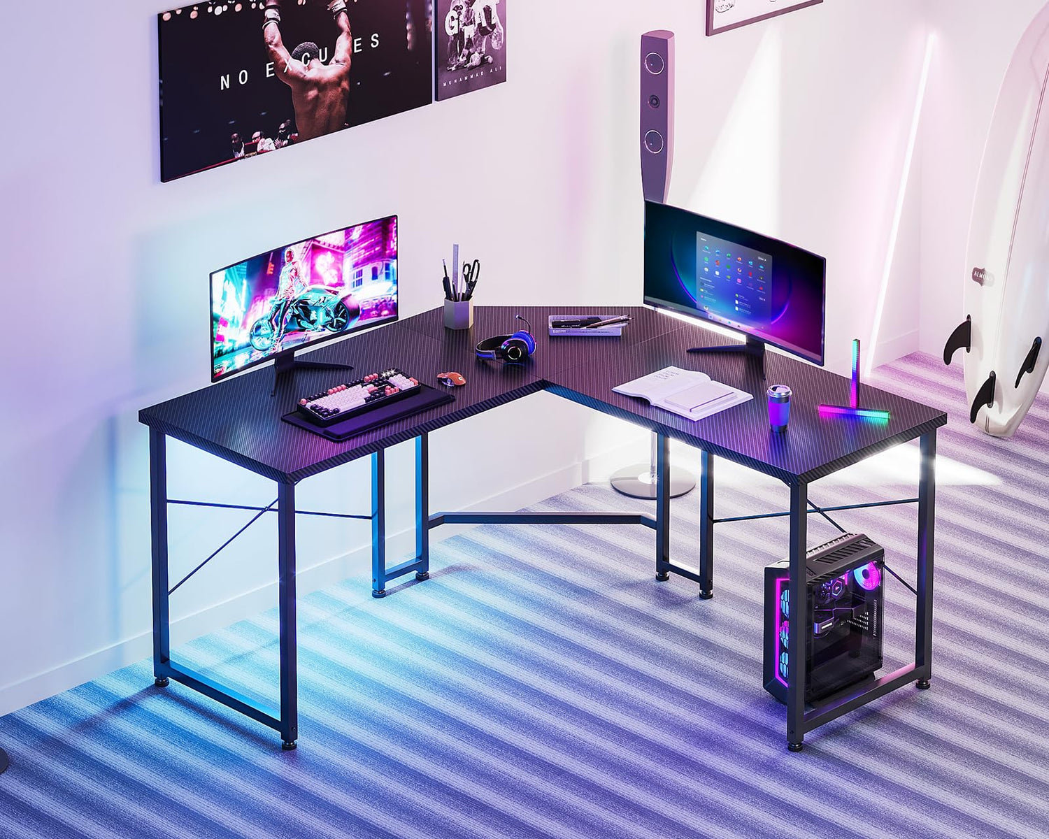 - 【 Ergonomic L-Shaped Design for Gaming & Work】Engineered for gamers and professionals, this corner desk maximizes space utilization with its 51" desk surface. The L-shape fits seamlessly into room corners while providing ample room for multi-monitor setups and immersive gameplay.