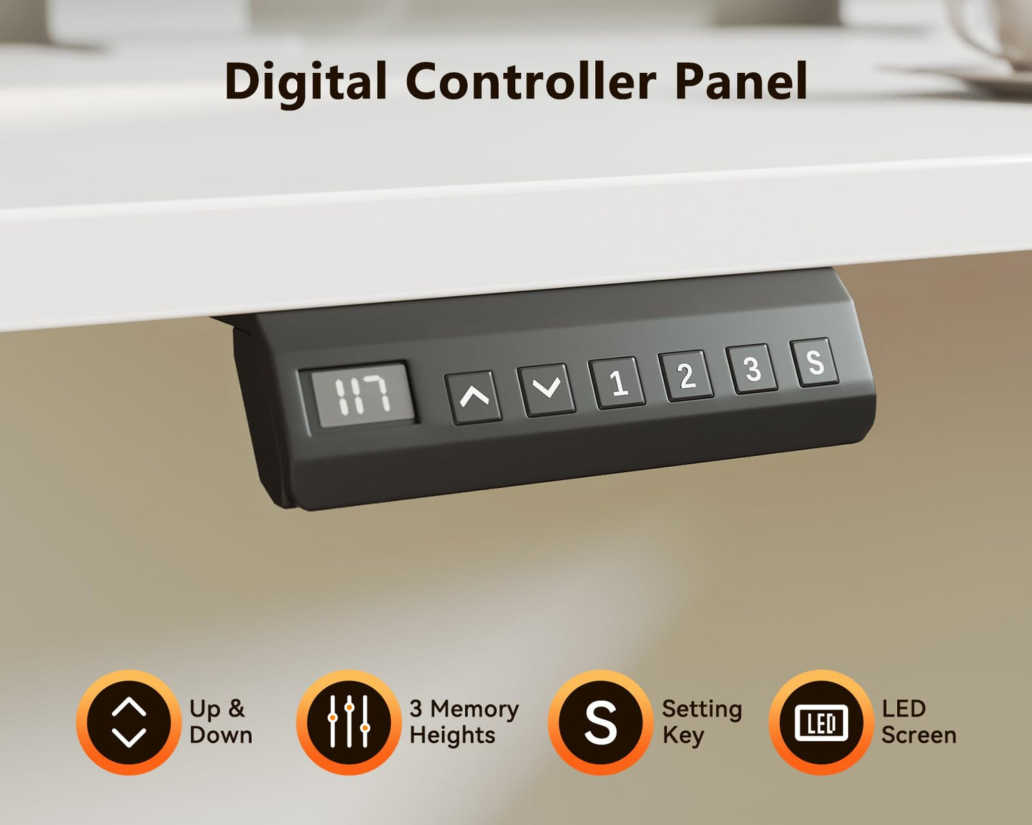 - Electric Adjustable Height : This L shaped standing desk can be adjusted to different heights, ranging from 27.9 to 46.1 inches. You can choose the desired height according to your using needs by the 3 height-memory buttons and easily switch between sitting and standing positions