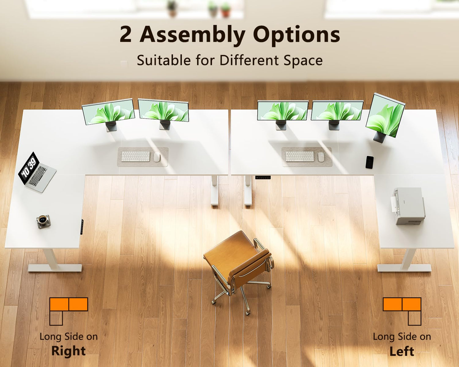 - Spacious Workspace: The corner standing desk's ample desktop space is ideal for home offices and gaming, and the large space easily accommodates multiple laptops and monitors
