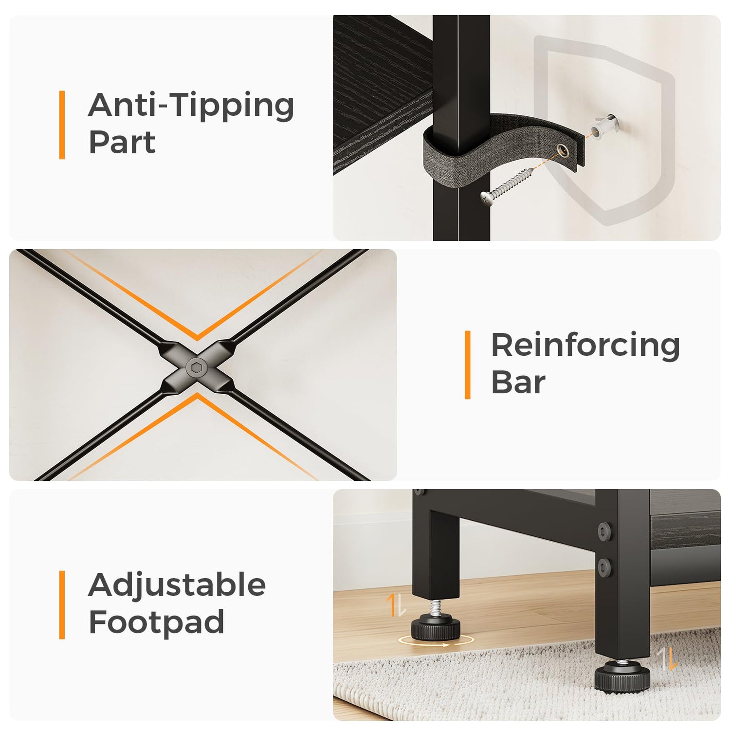- 【Anti-Tip Safety & Premium Build】 Constructed with a robust steel frame and high-density particle boards, this bookshelf guarantees long-lasting durability. An anti-toppling kit and height-adjustable foot pads provide enhanced stability on uneven surfaces, while protect your floors. Built to withstand daily use, it combines safety with industrial-strength reliability.