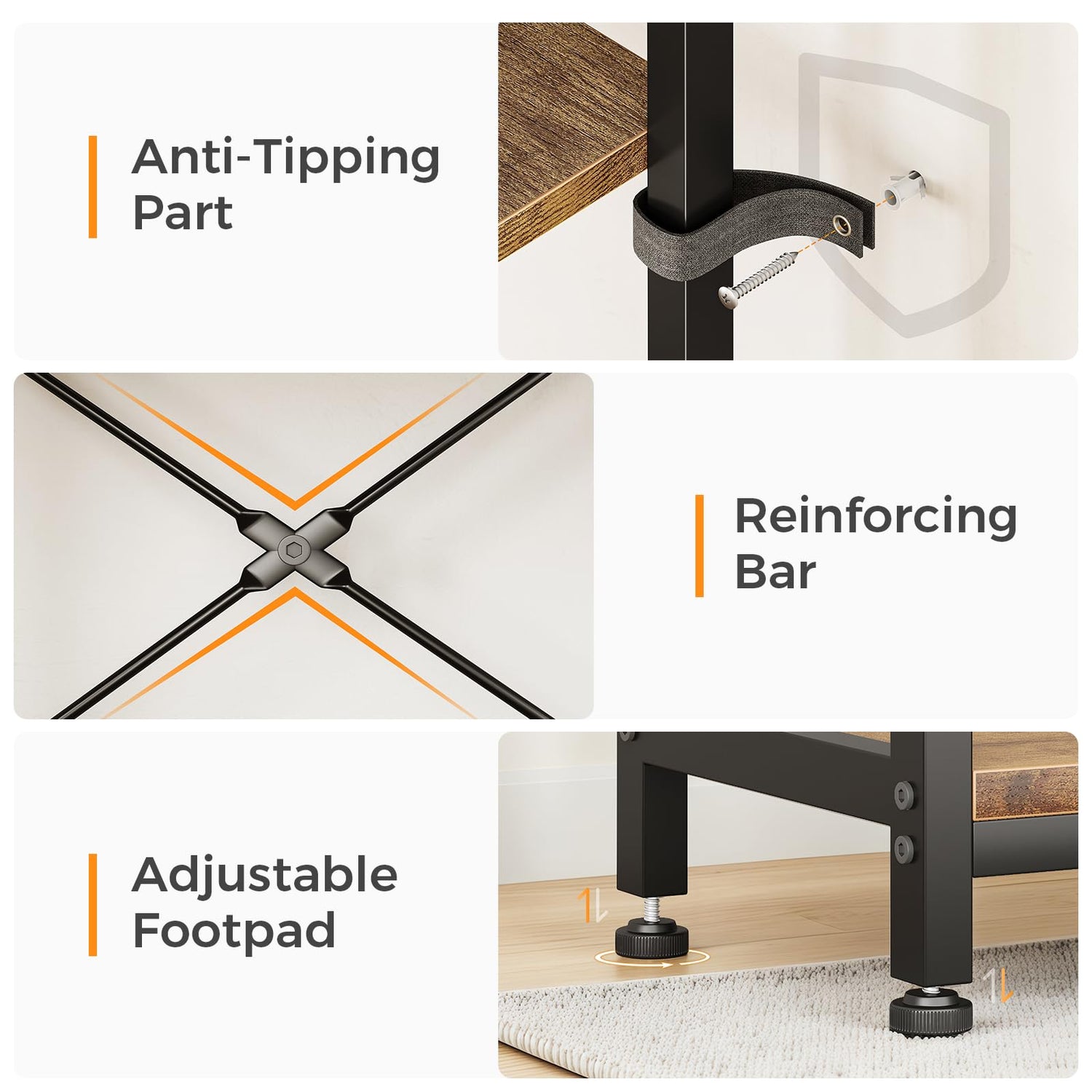 - 【Anti-Tip Safety & Premium Build】 Constructed with a robust steel frame and high-density particle boards, this bookshelf guarantees long-lasting durability. An anti-toppling kit and height-adjustable foot pads provide enhanced stability on uneven surfaces, while protect your floors. Built to withstand daily use, it combines safety with industrial-strength reliability.