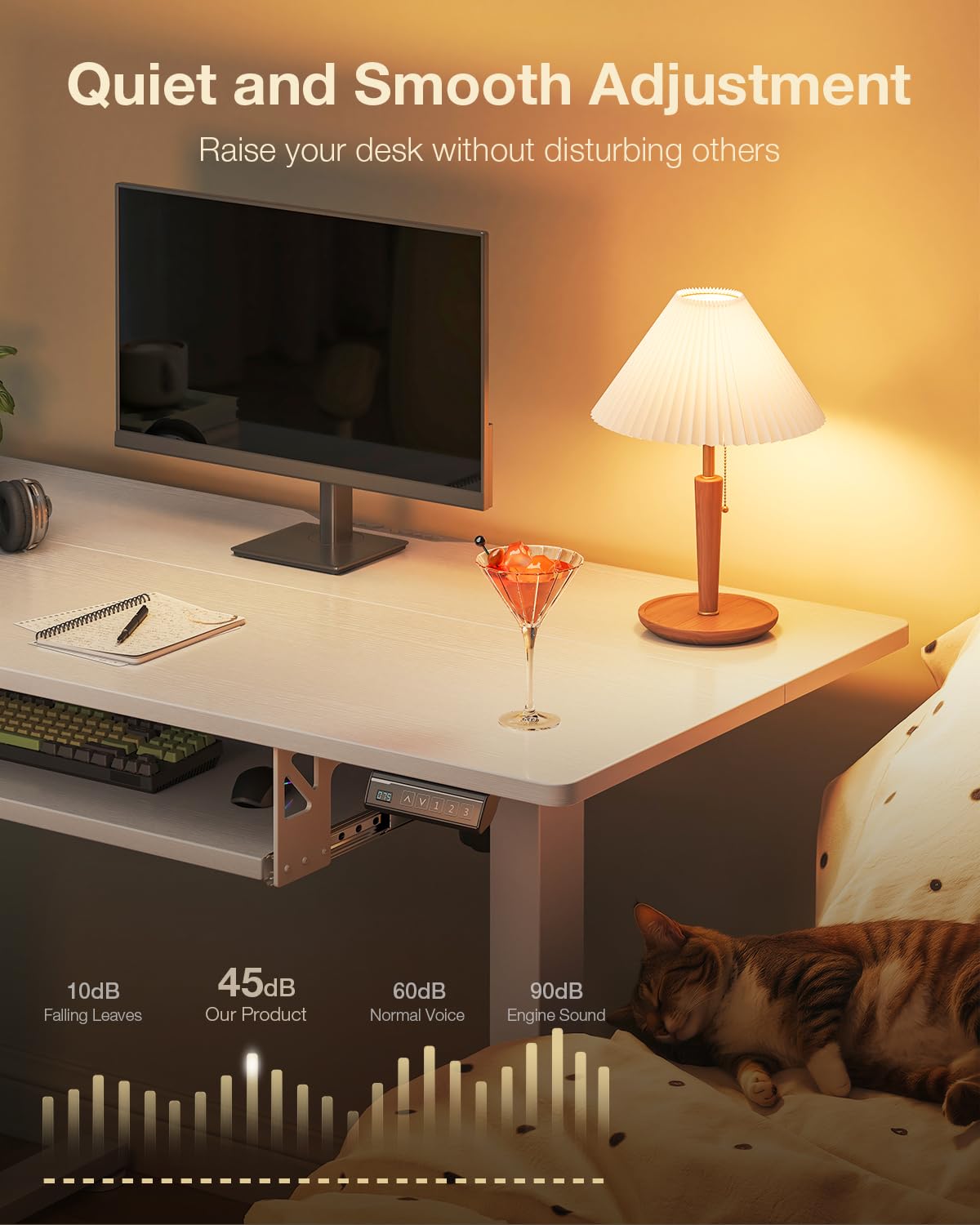 - Smooth Height Adjustment: Freely select electric standing desk height, from 28.3" to 46.4". Save your favorite three settings and smoothly switch between them