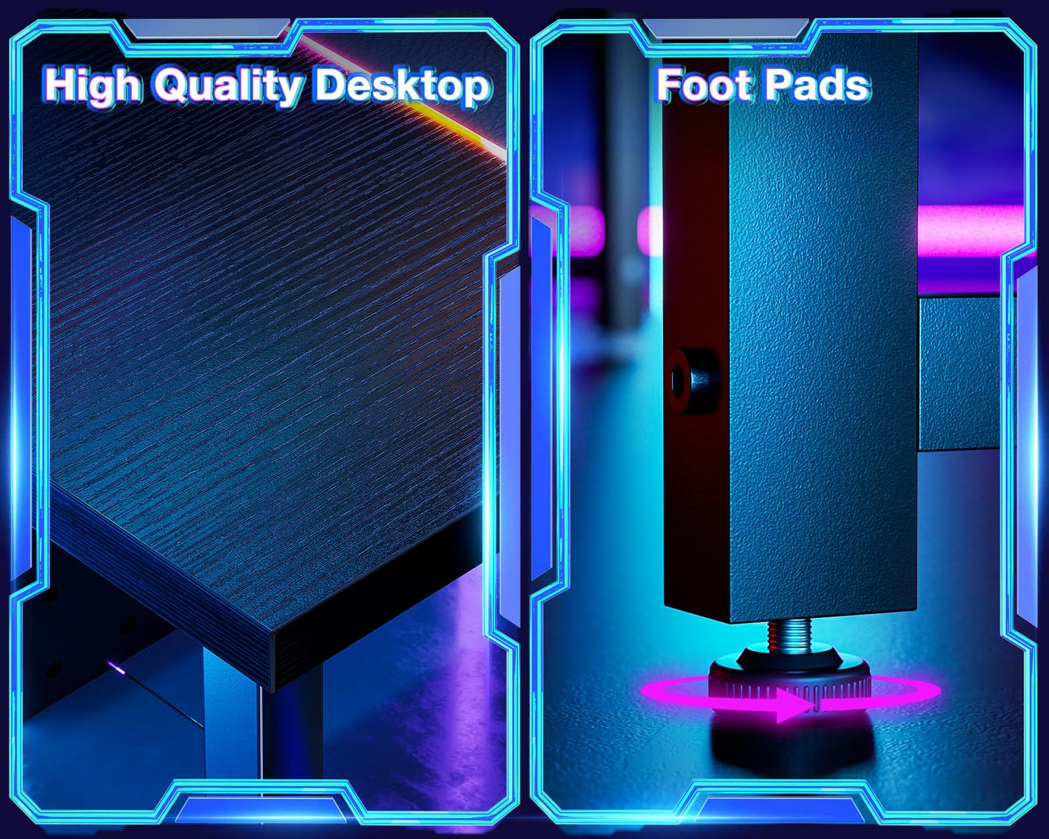 - 【Stability Strong, Durability Long】 Crafted with meticulous attention to detail, this gaming desk boasts unparalleled stability and durability. Supported by 8 steel legs and adjustable leg pads, it provides a solid foundation for your gaming rig, ensuring that your setup remains steady and secure even during intense gaming sessions.