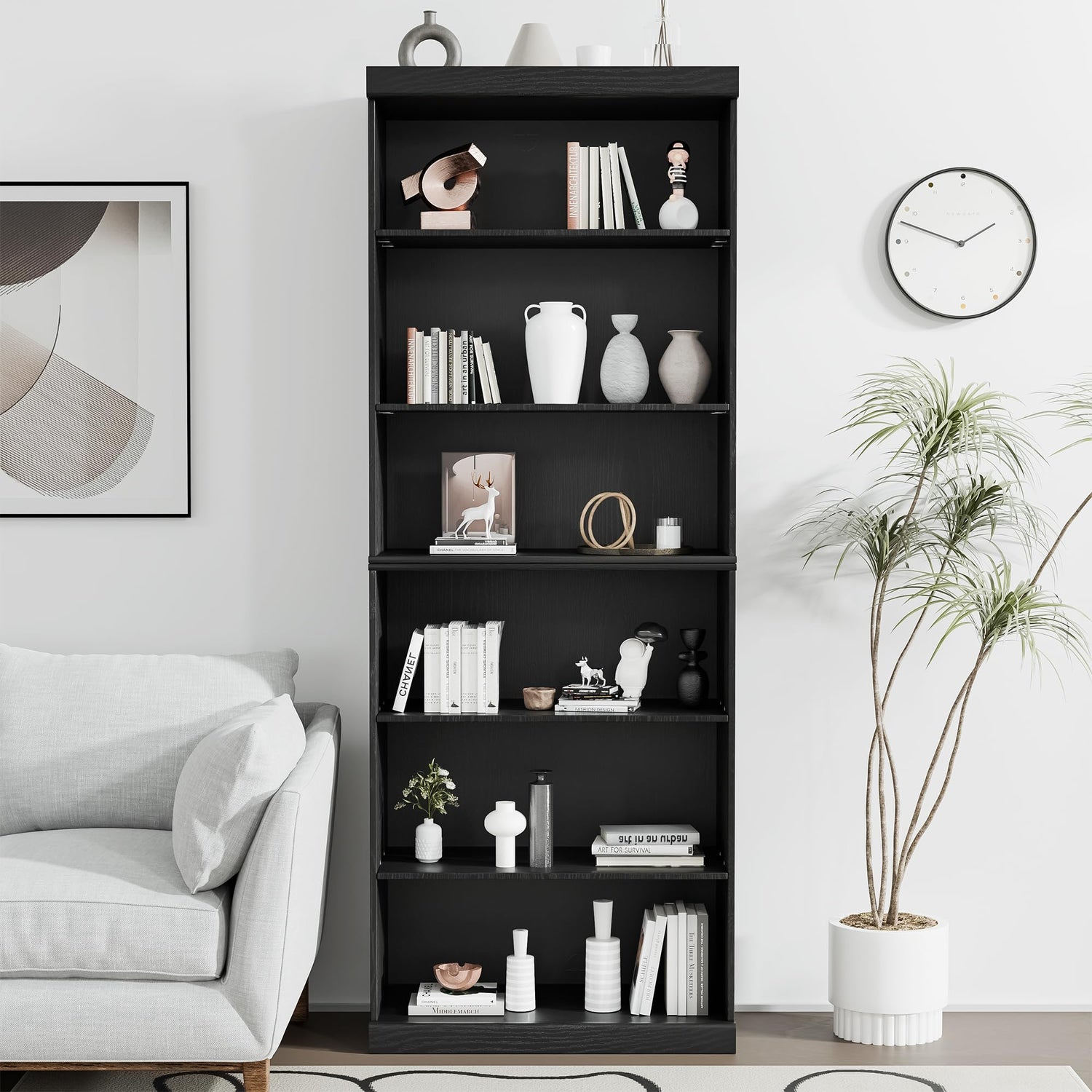 Casaphoria 82" H Wooden Bookcase, Heavy Duty Bookshelves, 6-Tier Wide Bookshelf with Large Storage Space for Home Office, 82" H x 31" W x 16" D, 130Lb, Black