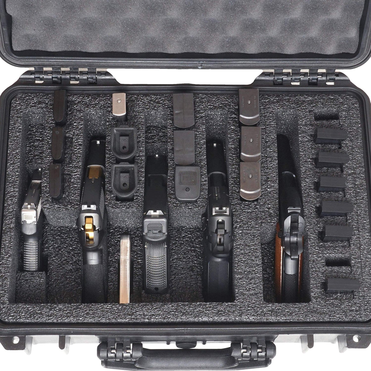 Case Club 5 Pistol and 20 Magazine Pre-Cut Heavy Duty Waterproof Case with Included Silica Gel Canister to Help Prevent Gun Rust (Upgraded Gen-3)