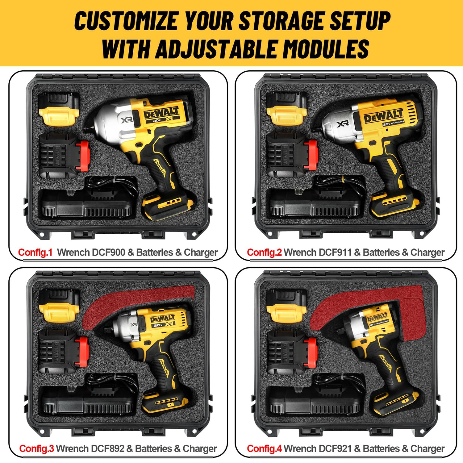 - [Hard case for Dewalt power tools & battery] : LOTOCASE For Dewalt tools is designed for Dewalt 1/2 cordless impact wrench: DCF961, DCF922, DCF921, DCF911, DCF901, DCF900, DCF899, DCF897, DCF894, DCF892, DCF891, DCF889, DCF880; 3/4 cordless impact wrench: DCF964; 3/8 cordless impact wrench: DCF923, DCF913, DCF903, DCF902, DCF890, DCF883. Compatible with 12V, 20V, 60V batteries & Charger