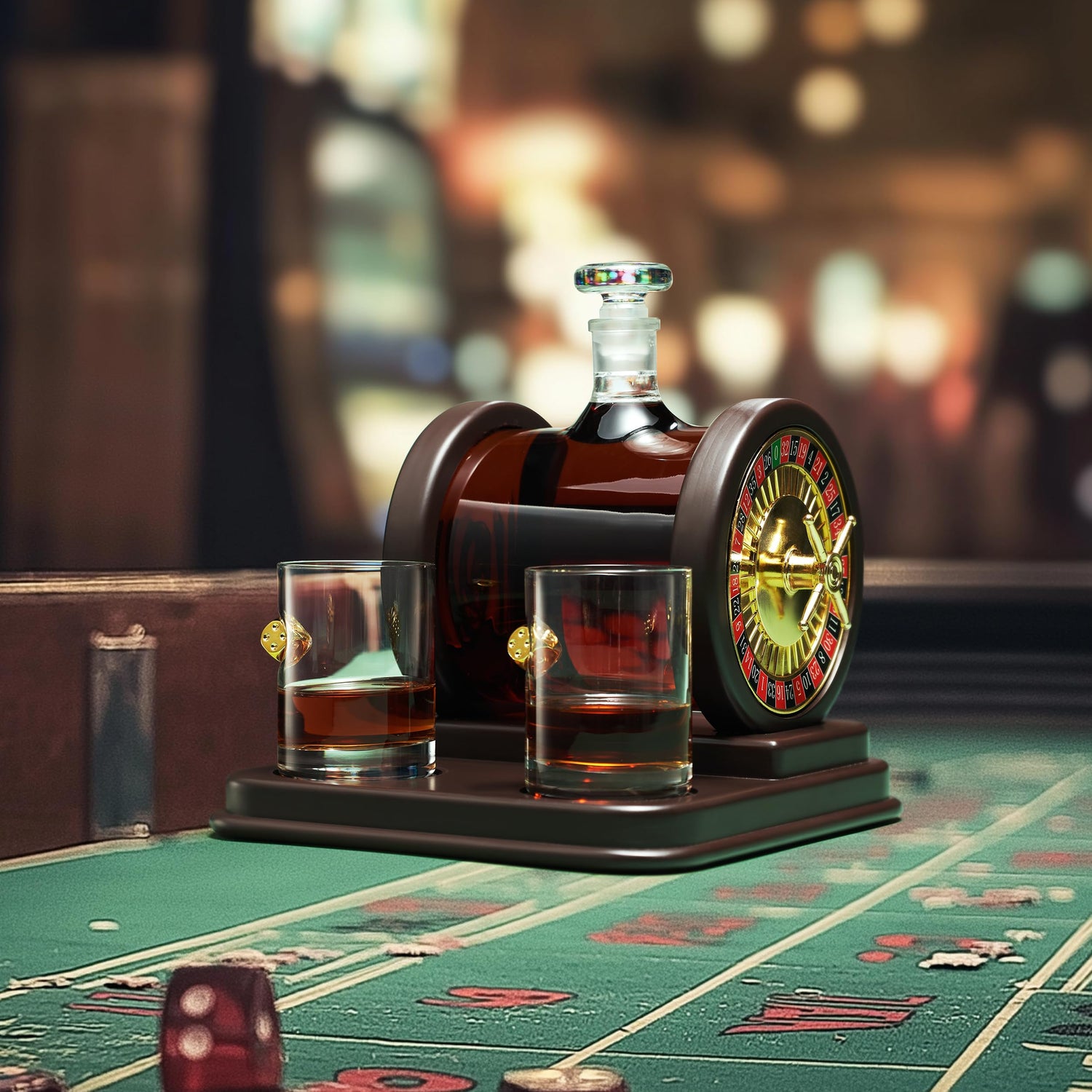 - BRING THE CASINO HOME: The Casino Roulette Whiskey Decanter is more than just a barware piece; it's a statement of style and sophistication. Perfect for men who enjoy the thrill of the game, this decanter set brings the casino experience right into your home bar. With its unique roulette-inspired design, it’s ideal for entertaining or adding a touch of flair to any space. Whether for casual drinks or festive gatherings, this decanter set will be the center of attention.