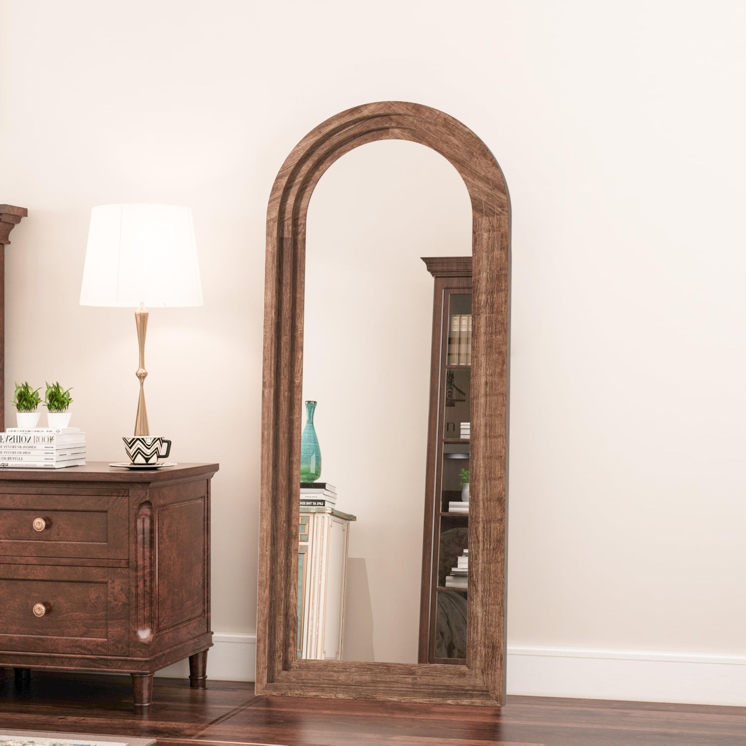 CASSILANDO Full Length Mirror Arched 65"x24" Wood Wall Full Length Distressed Large Floor Mirror for Living Room, Bedroom, Entrance.(Coffee)