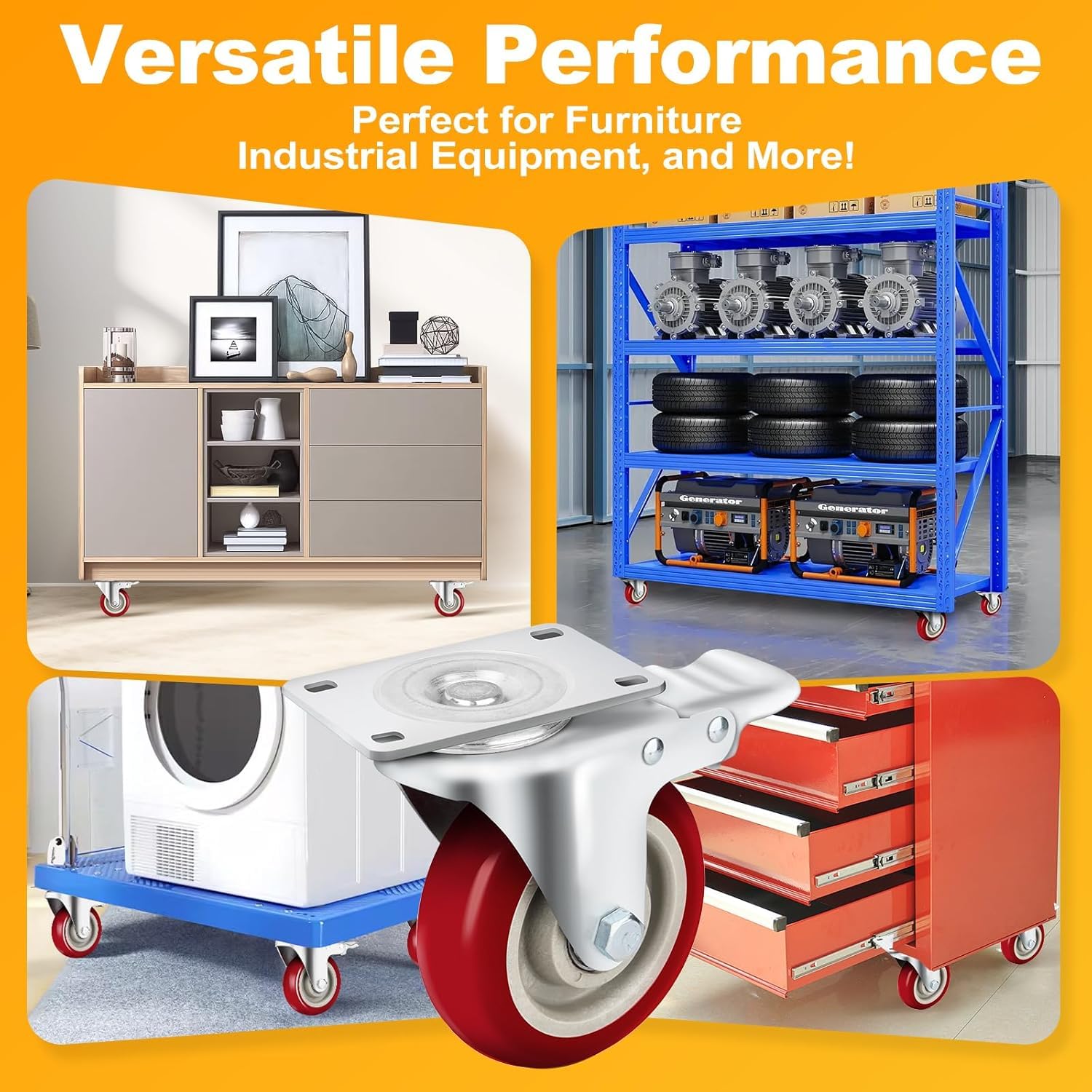 - 【Advanced Dual Locking Mechanism】 - Each caster in the set is equipped with a robust brake system that locks both the wheel and the swivel simultaneously. This ensures maximum stability and safety for your equipment, preventing any unwanted movement or accidents. Perfect for workbenches, carts, and heavy-duty furniture.