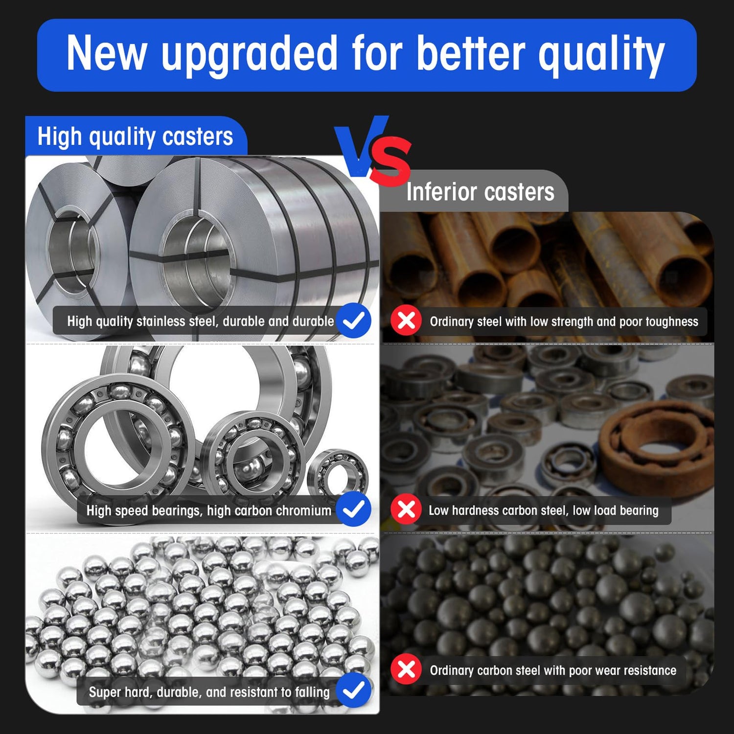- Heavy Duty Casters - Premium Materials and Greater Durability: Precision ball double bearings for smooth swiveling and rolling. Strong 3″caster wheels are made from solid polyurethane with strong weight capacity. Each caster can carry 250Lbs