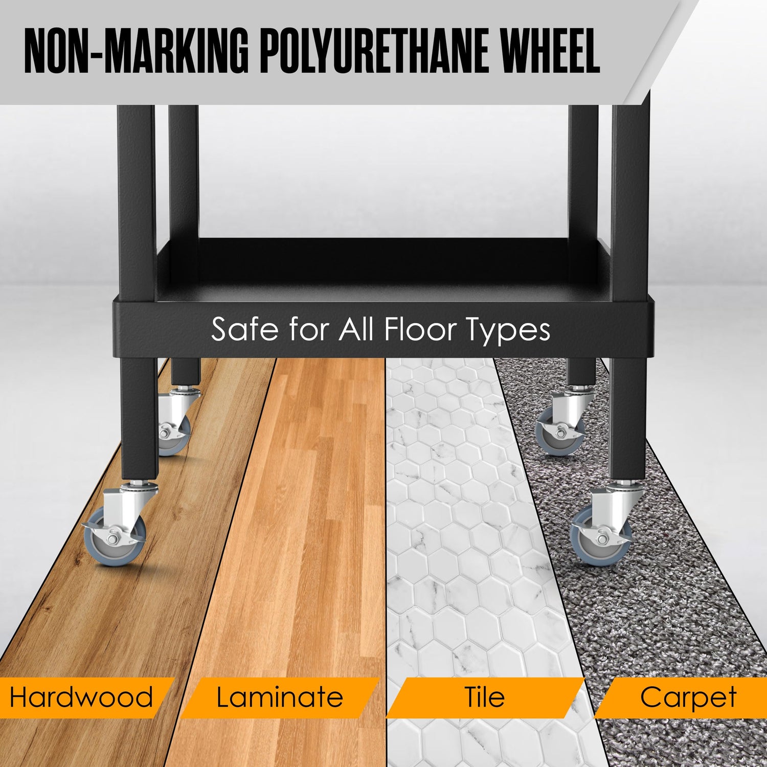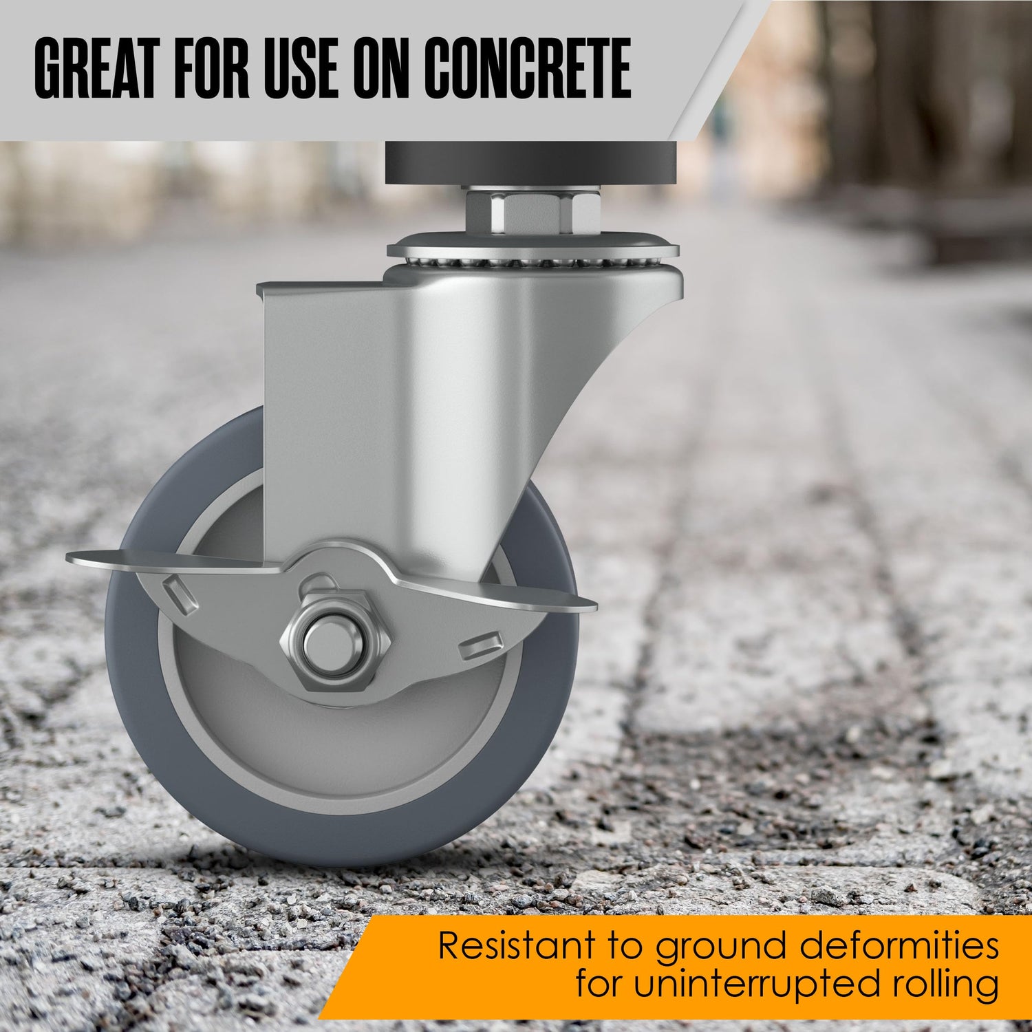- QUIET MOVEMENT ON HARD SURFACES: Our shelf wheels allow you to effortlessly position your steel stand in any desired area. These industrial casters are built to withstand rigorous use in warehouses, shops, restaurants, schools, and hospitals, making it easy to move your stand without inducing vibrations, rattling, squeaking, or other hazards and annoyances.