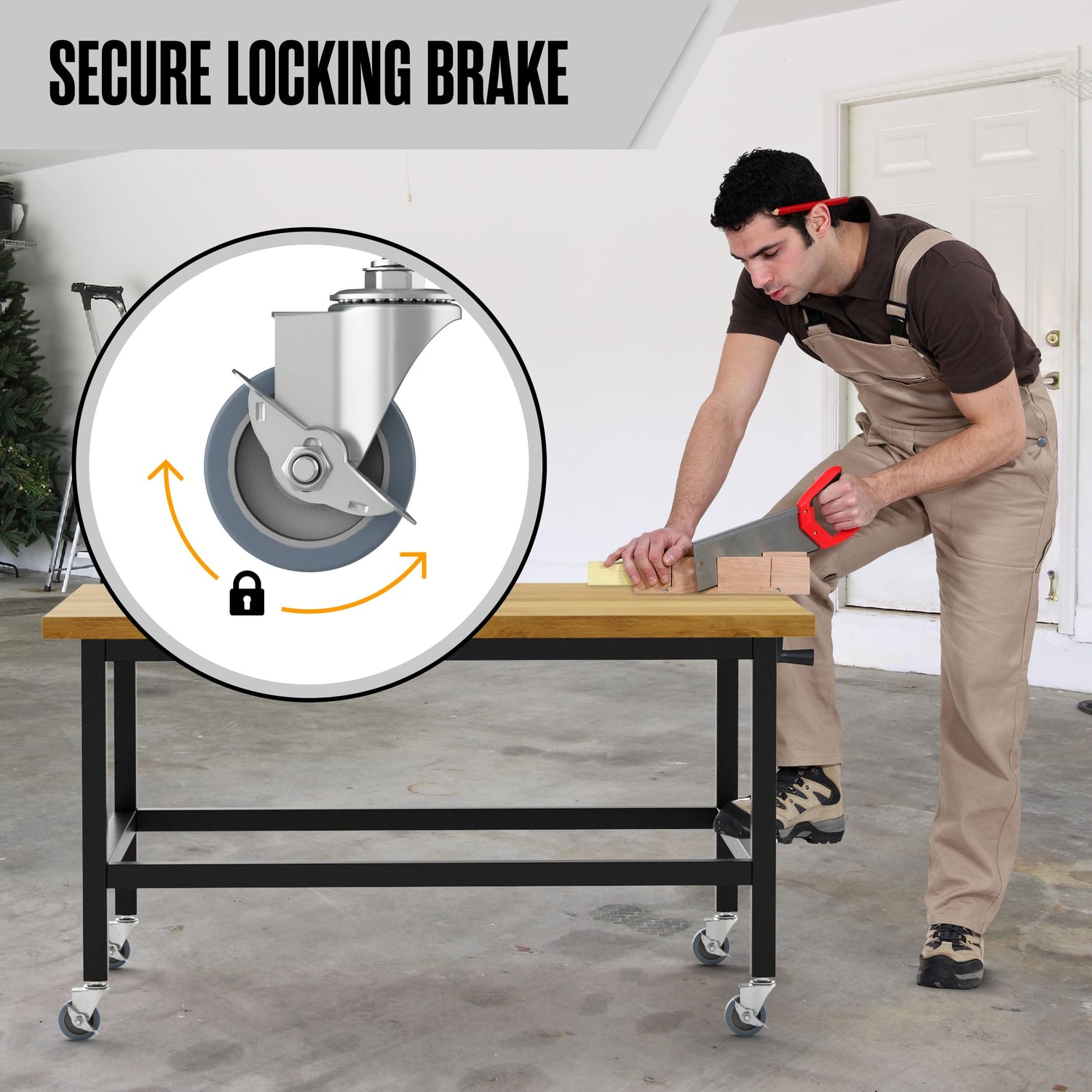 - SECURE LOCKING MECHANISM: The locks on these casters with brakes firmly secures the wheel in place to ensure safety. Additionally, each set also includes four locking nuts.