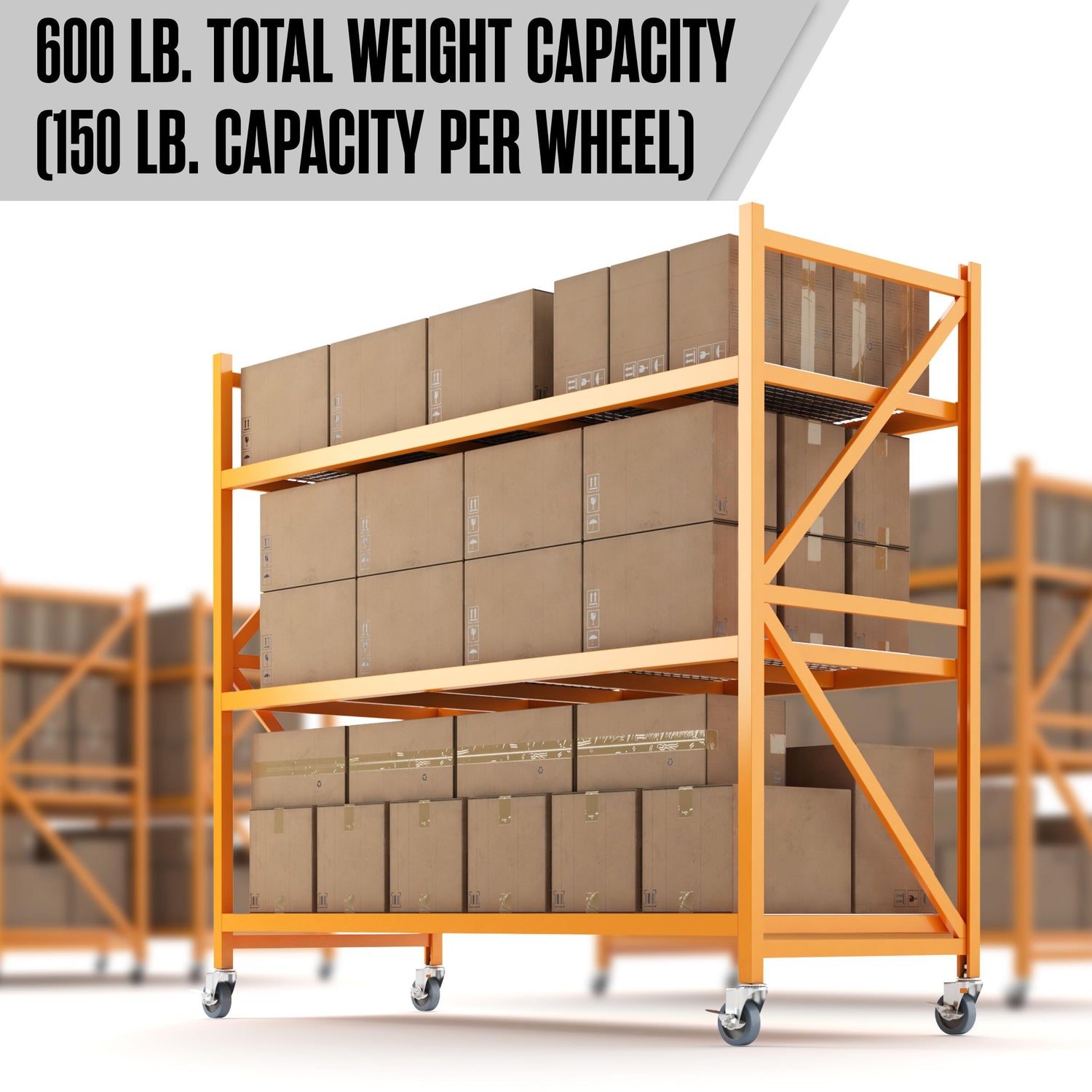 - 150 LB LOAD CAPACITY PER WHEEL: Each swivel caster supports 150 lbs. of load (with a 600 lb. total capacity for all four wheels). All of the heavy duty casters have brakes for security and 360-degree swivel action for smooth rolling on any surface.