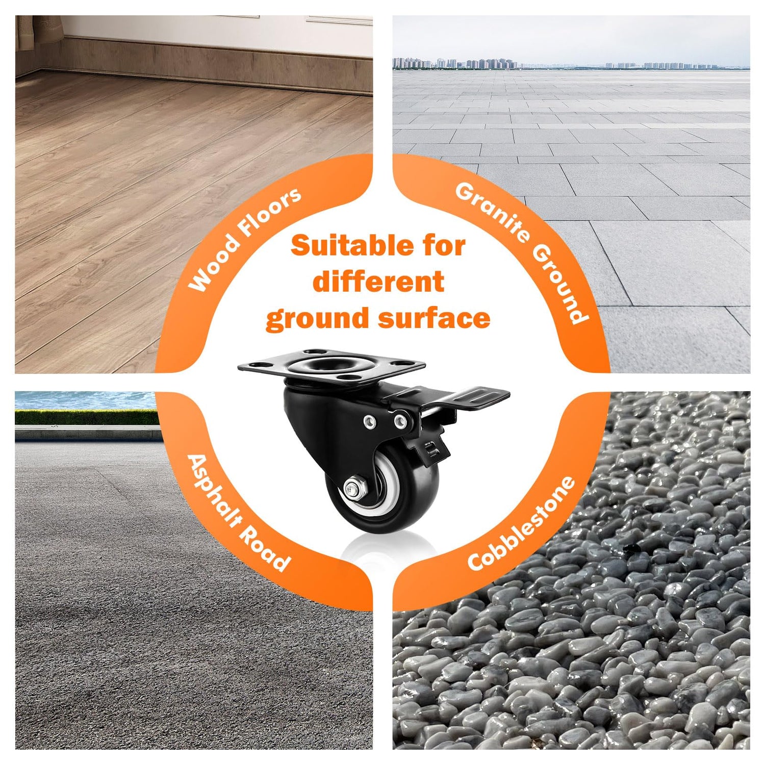 - Double Ball Bearings & Strong Load Capacity: All swivel locking casters set of 4 are double steel ball-bearing designed, which brings a maximum loading capacity of 500 lbs. Wheels roll and rotate smoothly from indoor flat surface to outdoor rugged place.
