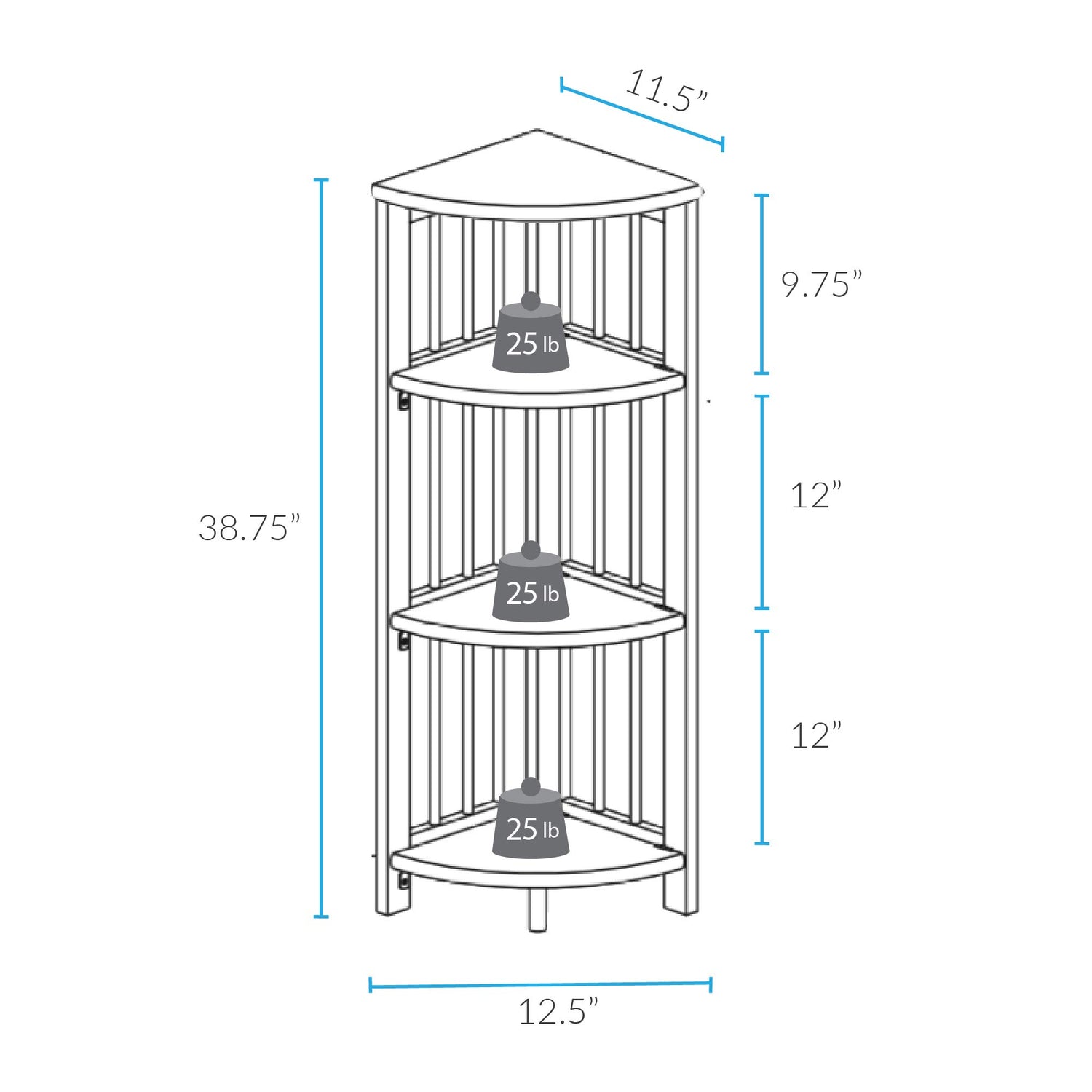 - Four (4) shelves to maximize storage and decorative displays that fits seamlessly in any corner to help utilize room space