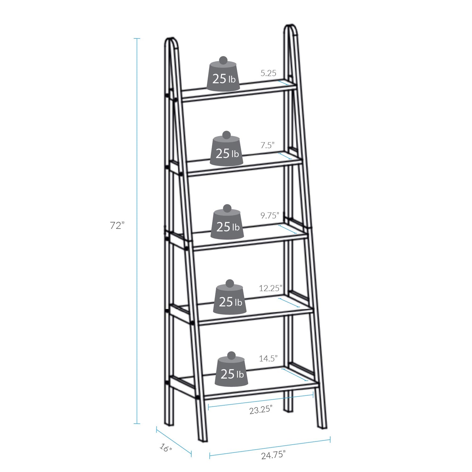 Details: Gentle slants and right angles make this Ladder Style Bookshelf an exciting alternative to your traditional rectangular bookcase. The 5 shelves retract in length as the bookcase ascends to accent your decor placement naturally. Complete your layout with a progressive piece that has classic features.