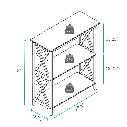- Contemporary x-design styling gives this piece a chic, airy look that prevents books from falling