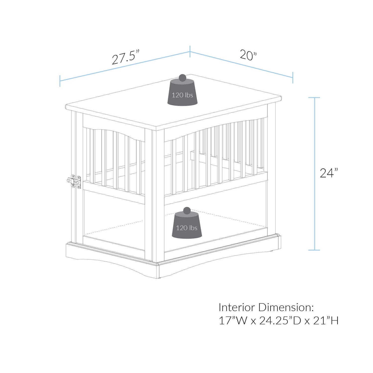 Details: Our solid wood Pet Crate End Table provides a cozy, private spot for your pet to sleep and relax. Strong lockable gate door allows for peace of mind when you're away from home. Rich finish/color options allow you to incorporate it with your other home furnishings.