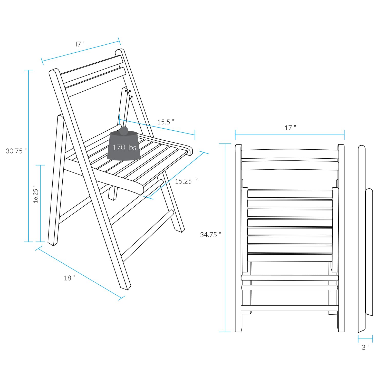 Casual Home Wooden Folding Chairs 2-Pcs Set, 17" W x 18" D x 30.75" H, White