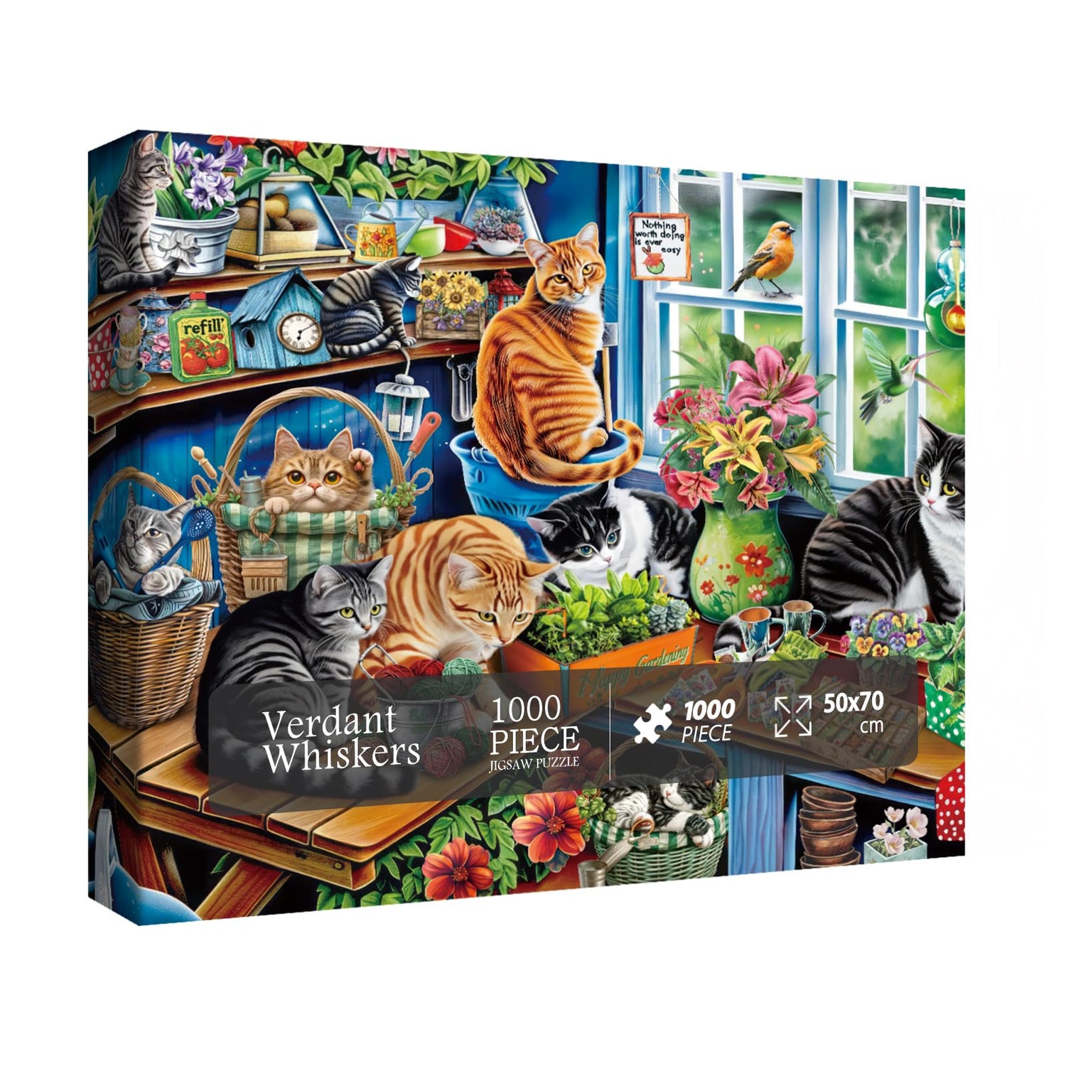 Details: Cat Gardening Cabin Puzzle for Adults 1000 Pieces, Flower Plant Jigsaw Puzzle, Cute Kitten Garden Puzzle