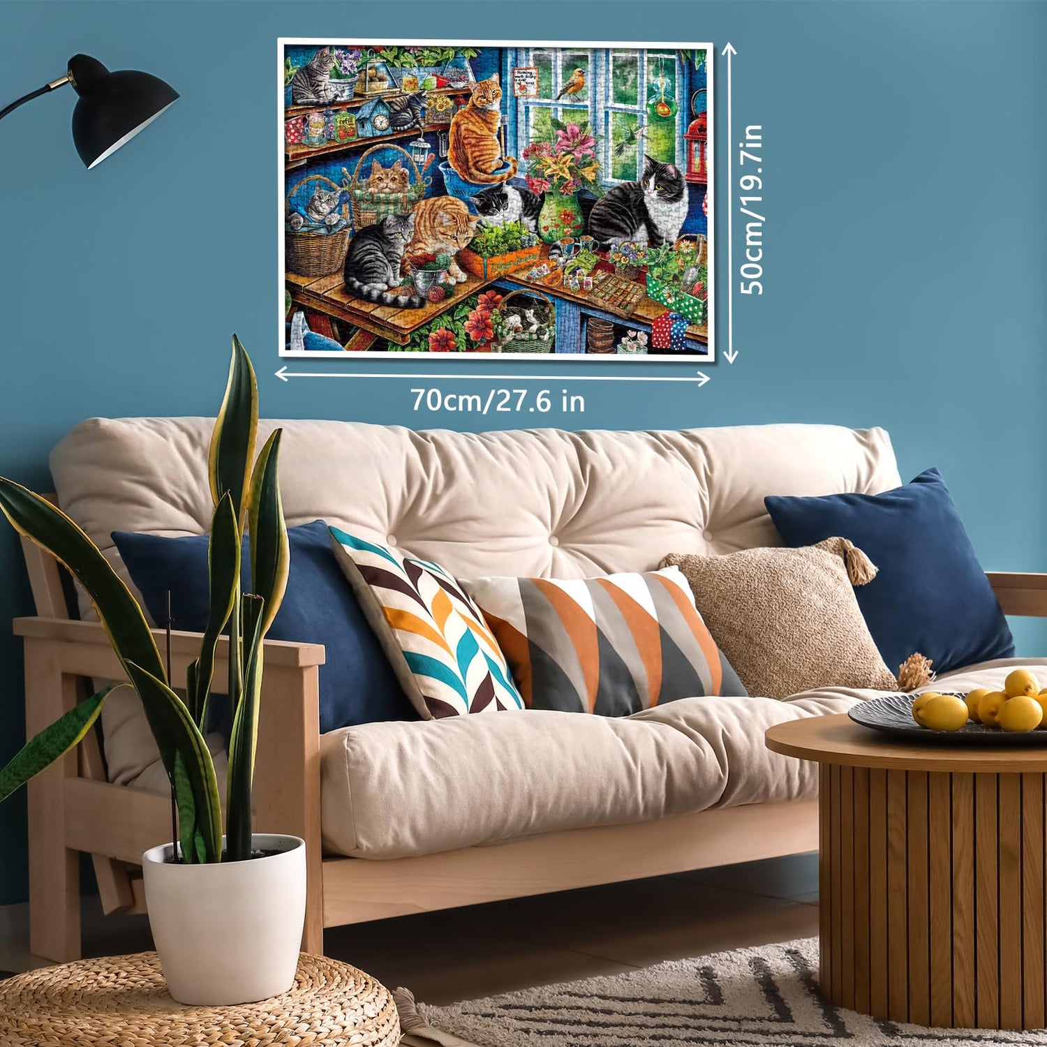 - Ideal for Home Decor: Once completed, this puzzle transforms into a charming work of art that adds a playful touch to any room. Frame it or display it in your home to celebrate the whimsical nature of cats and the beauty of gardens