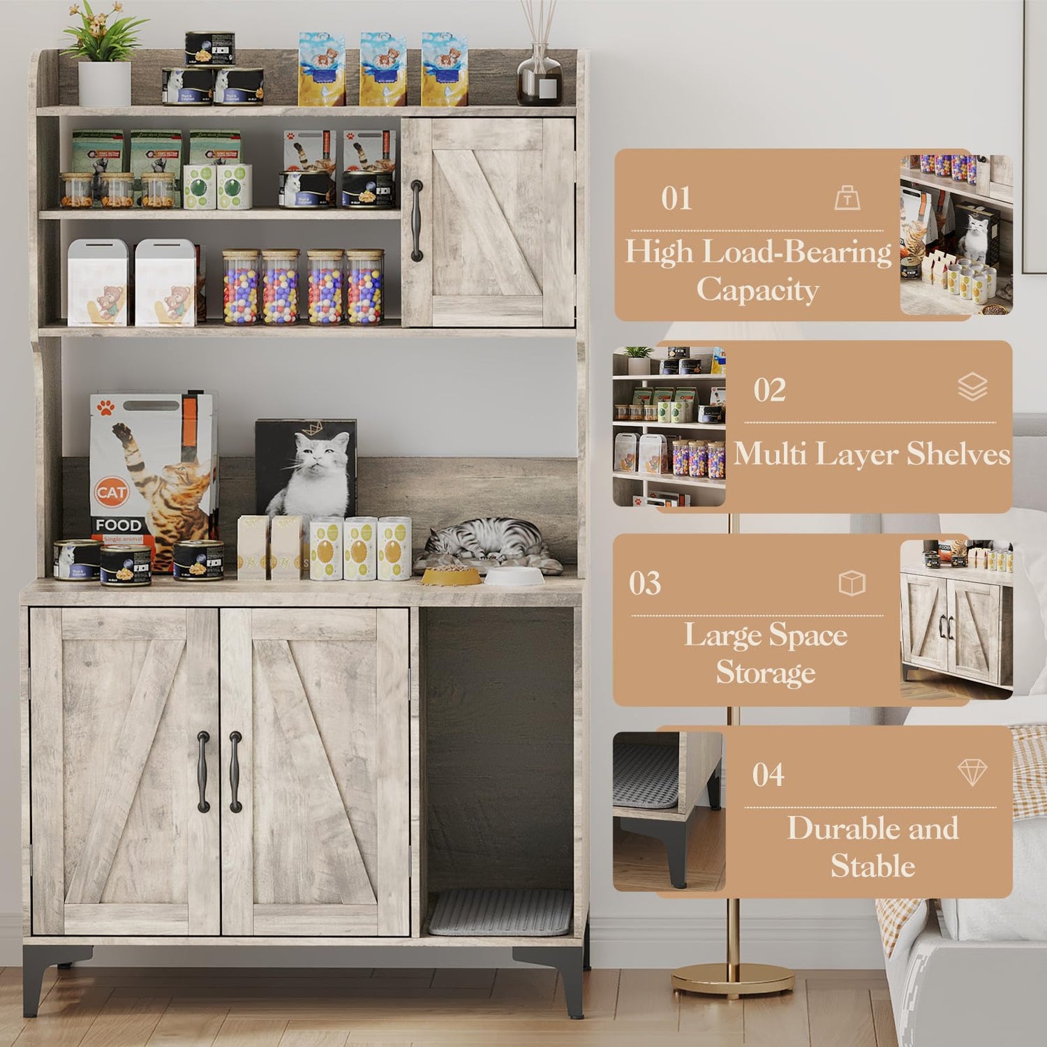 - - Increased Storage Space: Our cat litter box enclosure features 4 storage layers, 1 storage compartment, and 1 locker, providing ample space for your belongings and pet supplies